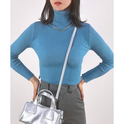 ベーシックなデザインで使いやすい、リブ編みのタートルニットです。