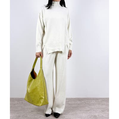 ハイネックトップスとリラックスパンツの組み合わせで、きれい見えと快適さを両立しました。