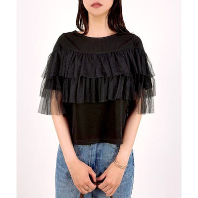 ・チュールを重ねたフリルデザインが主役のカットソーです