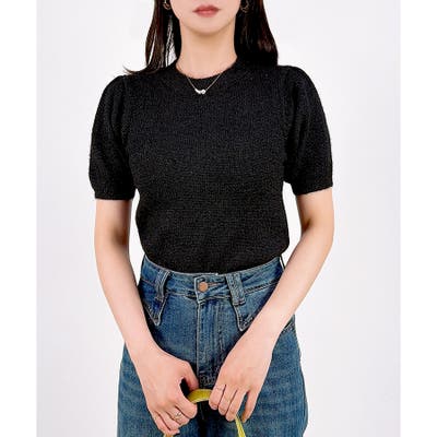 シンプルながらも立体感のある編み地と袖デザインがポイントのニットトップス。