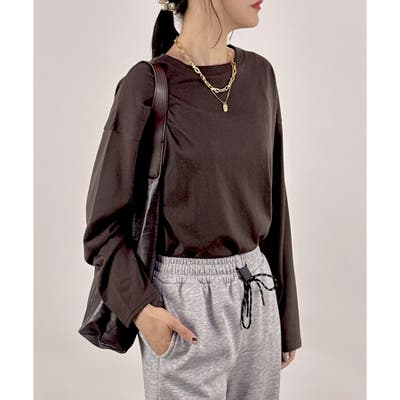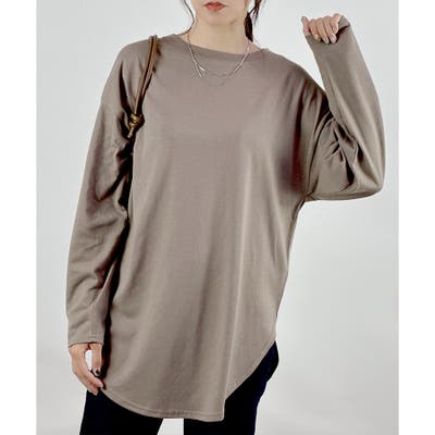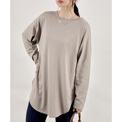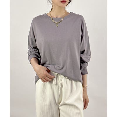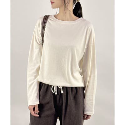 シンプルながらも裾のカーブデザインがポイントの長袖Tシャツ。