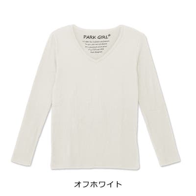 デコルテをきれいに見せてくれるVネックデザインで、重ね着にも便利な1枚。