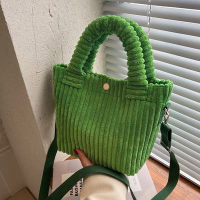 季節感たっぷりのコーデュロイ素材のハンドバッグ。