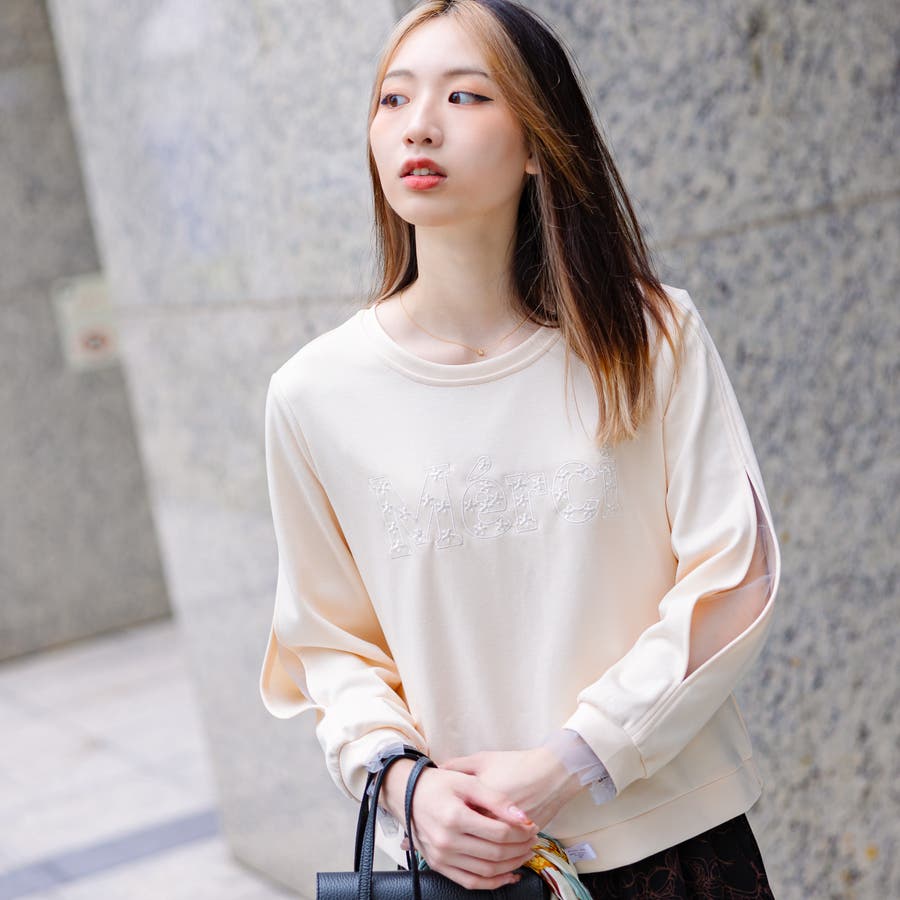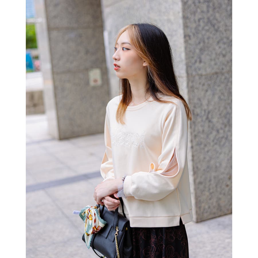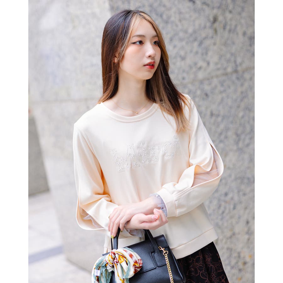 柔らかく上品なプルオーバーに繊細な袖のメッシュと 肌の透け感が女性らしさをUPさせてくれます♡