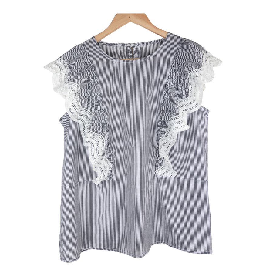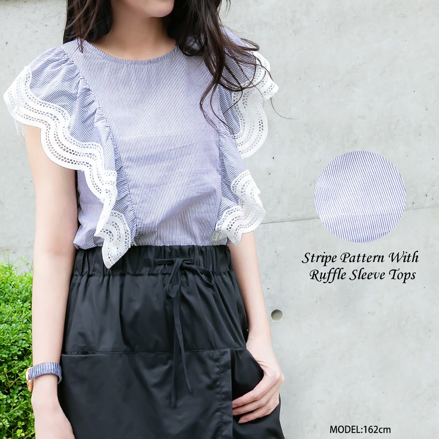 ストライプ柄with袖フリルのトップス レーディス トップス