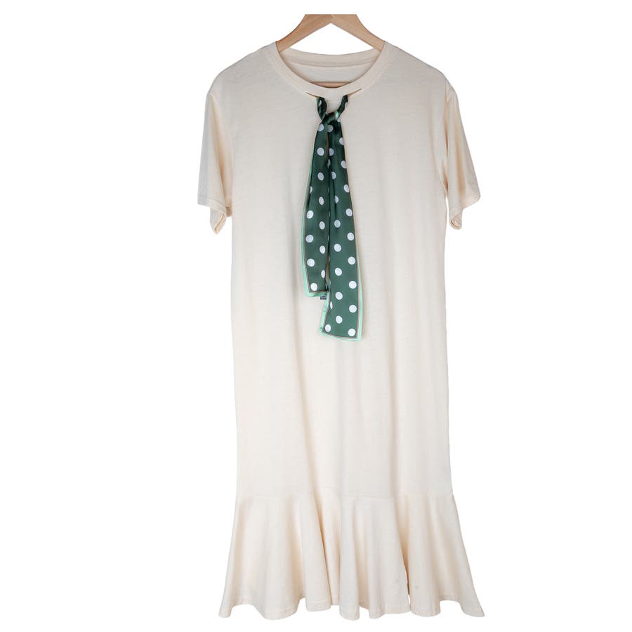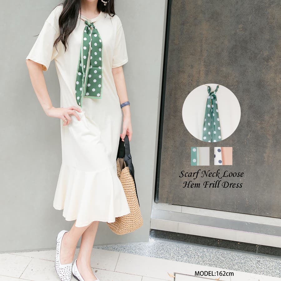 ドット柄スカーフ×裾フリルワンピース レーディス 半袖