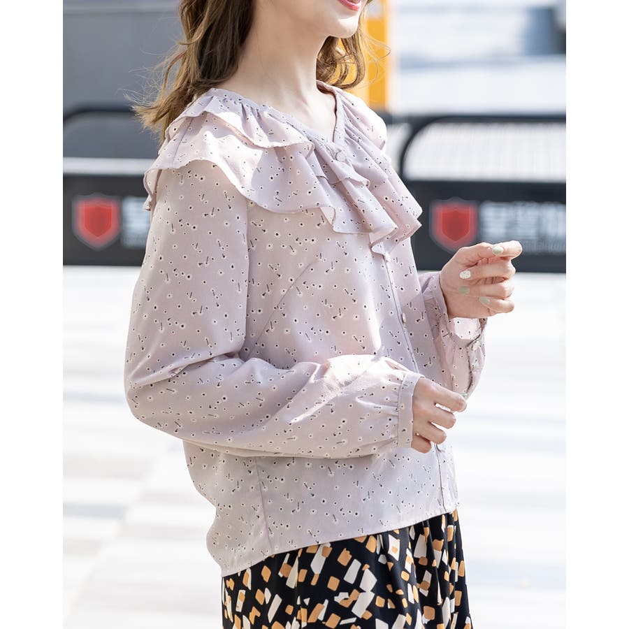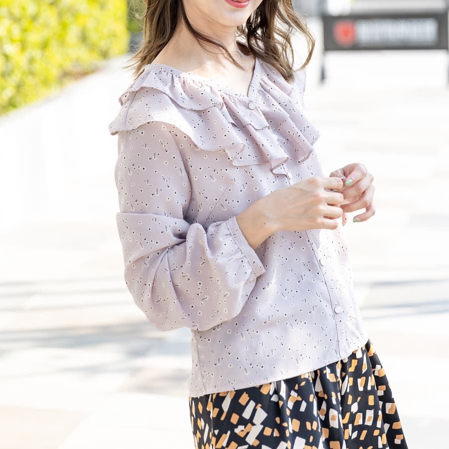 可愛らしさ溢れるフリル襟がポイントのブラウス。