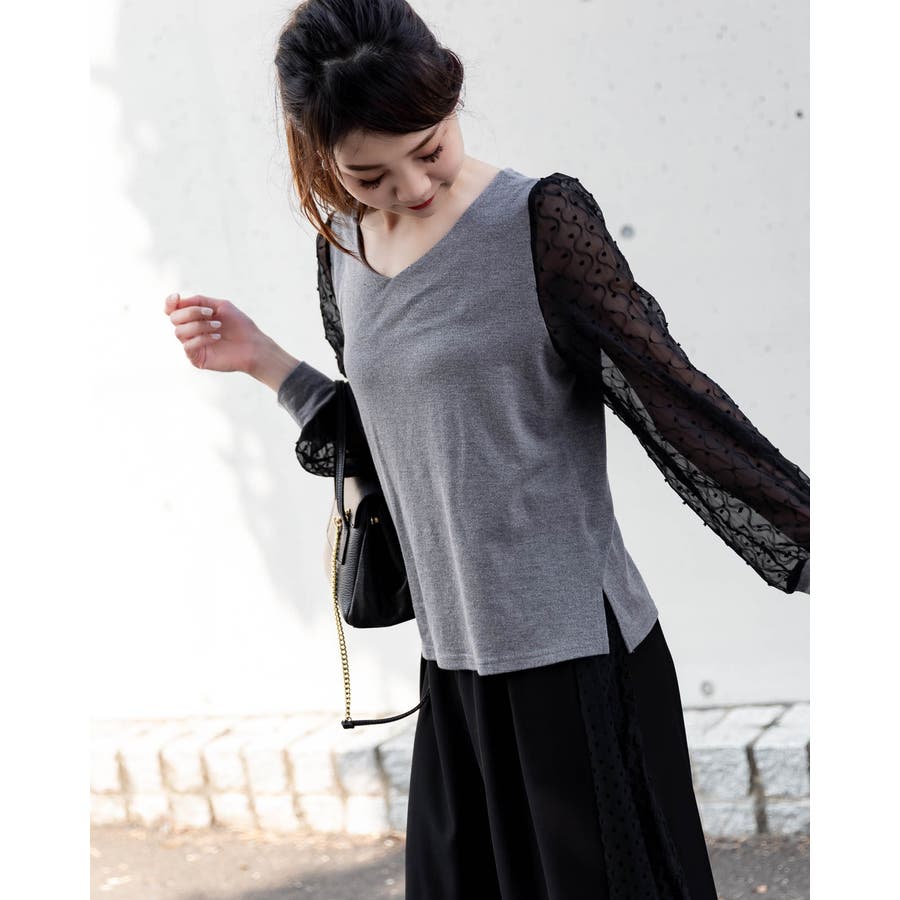 袖が黒の水玉模様のレースとなっていてとてもセクシーな一枚♪