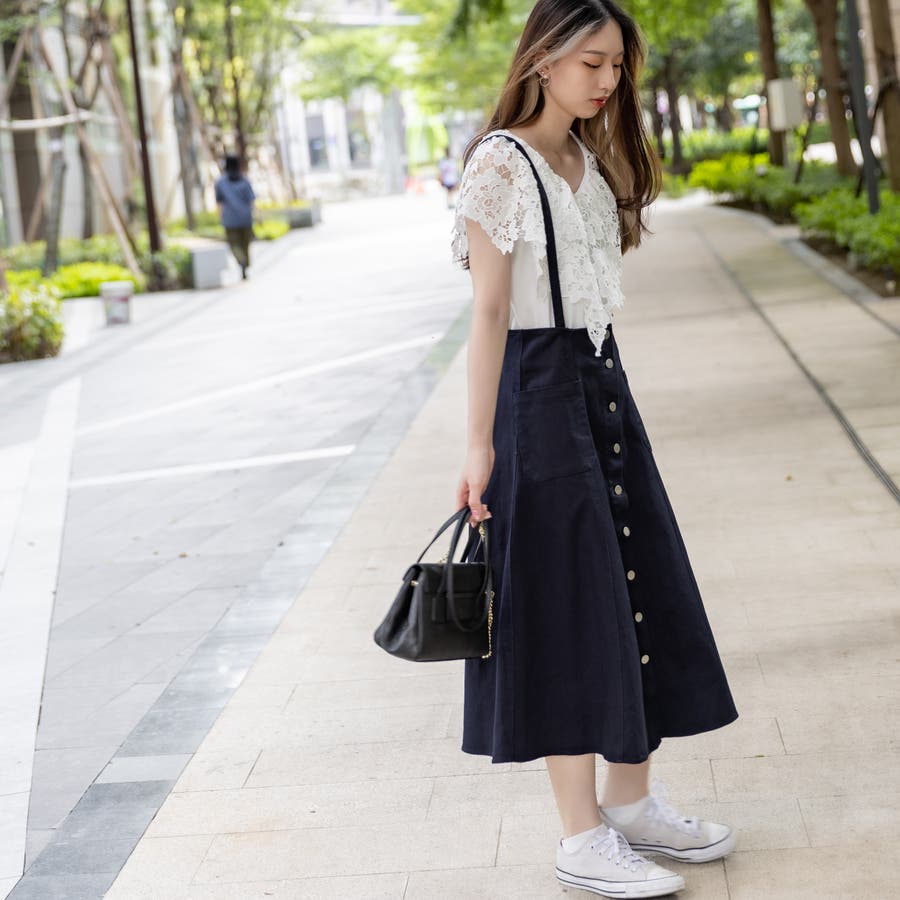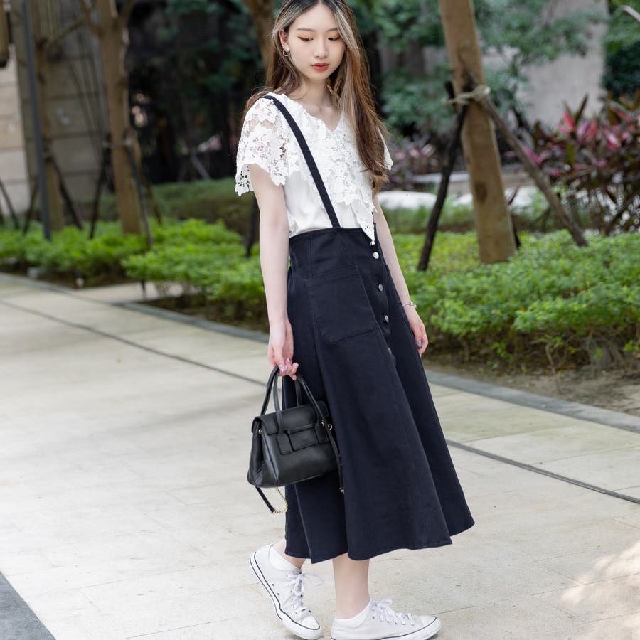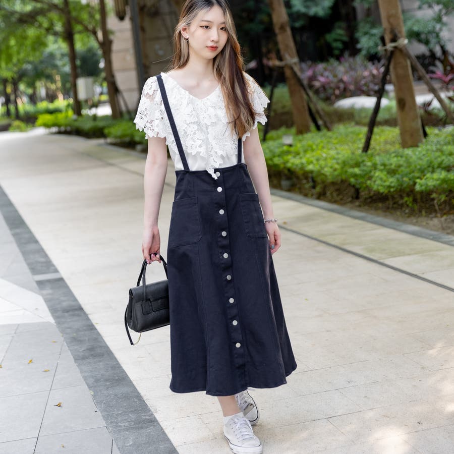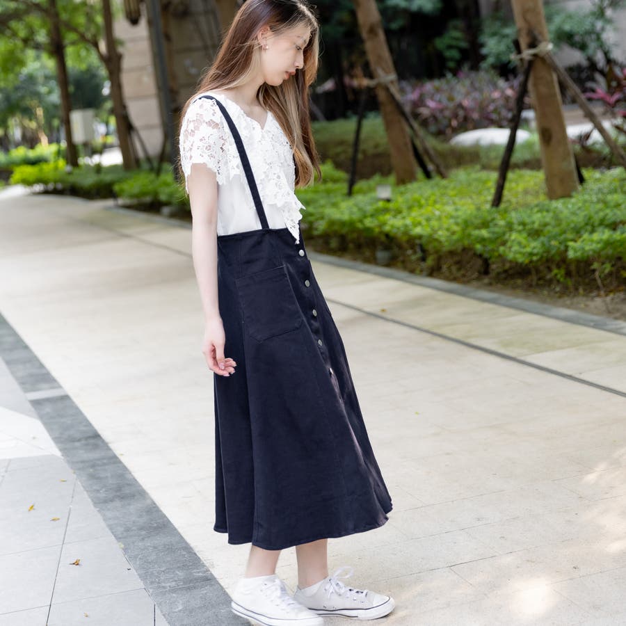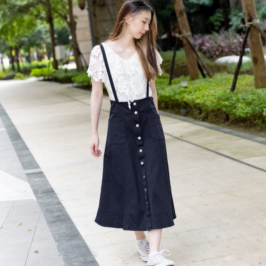 スカートを吊って着るのが可愛いサス付きスカートは、