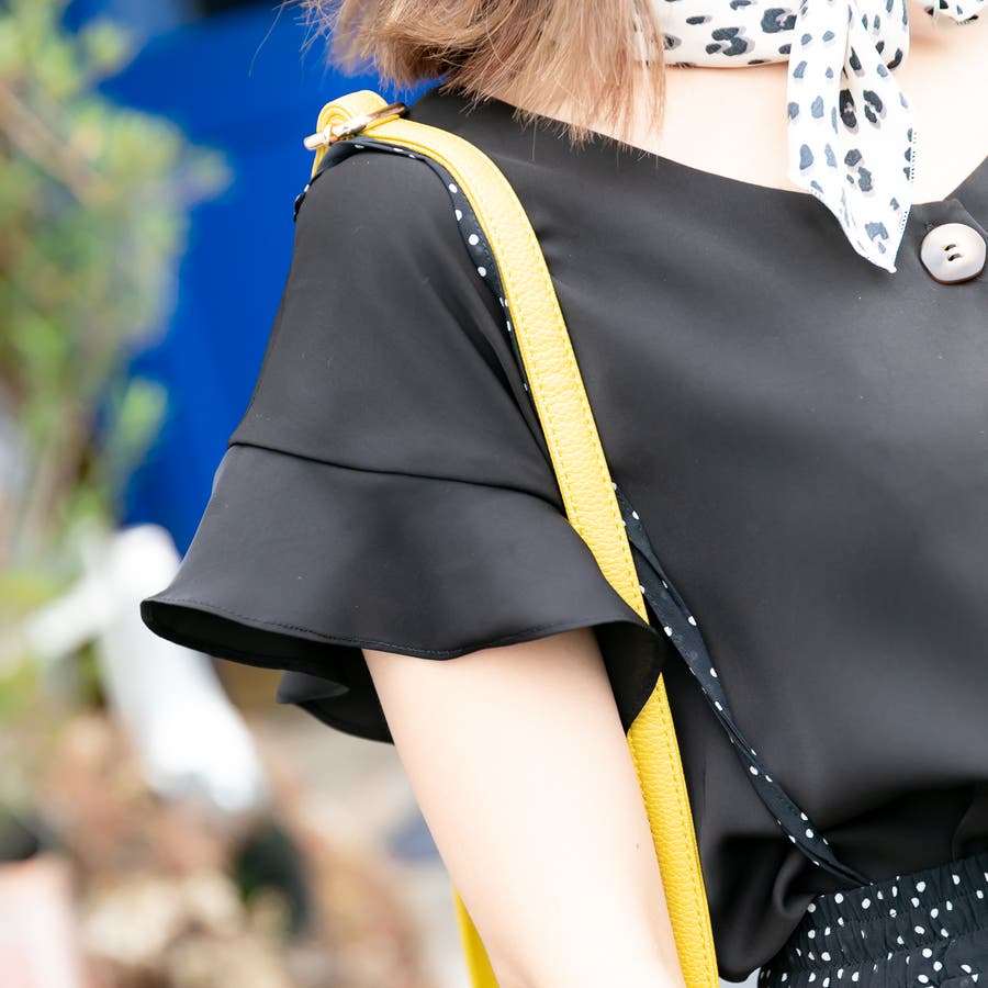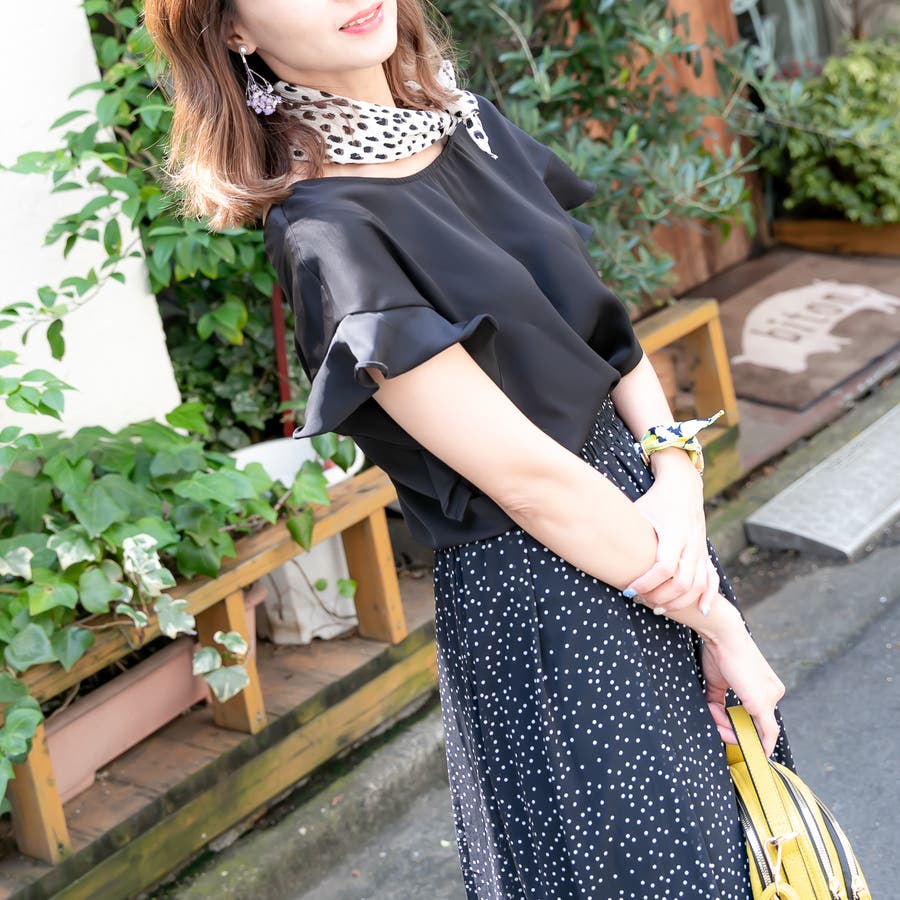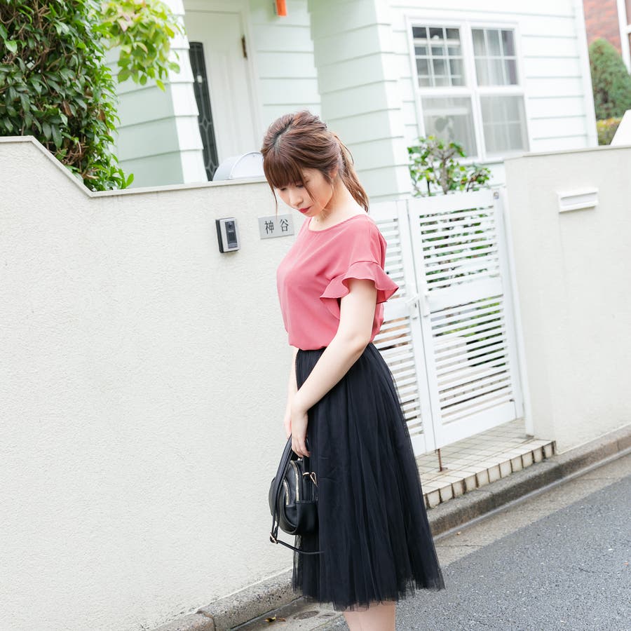 肩にふんわりとかかるフリルスリーブがフェミニンな雰囲気を演出してくれます。