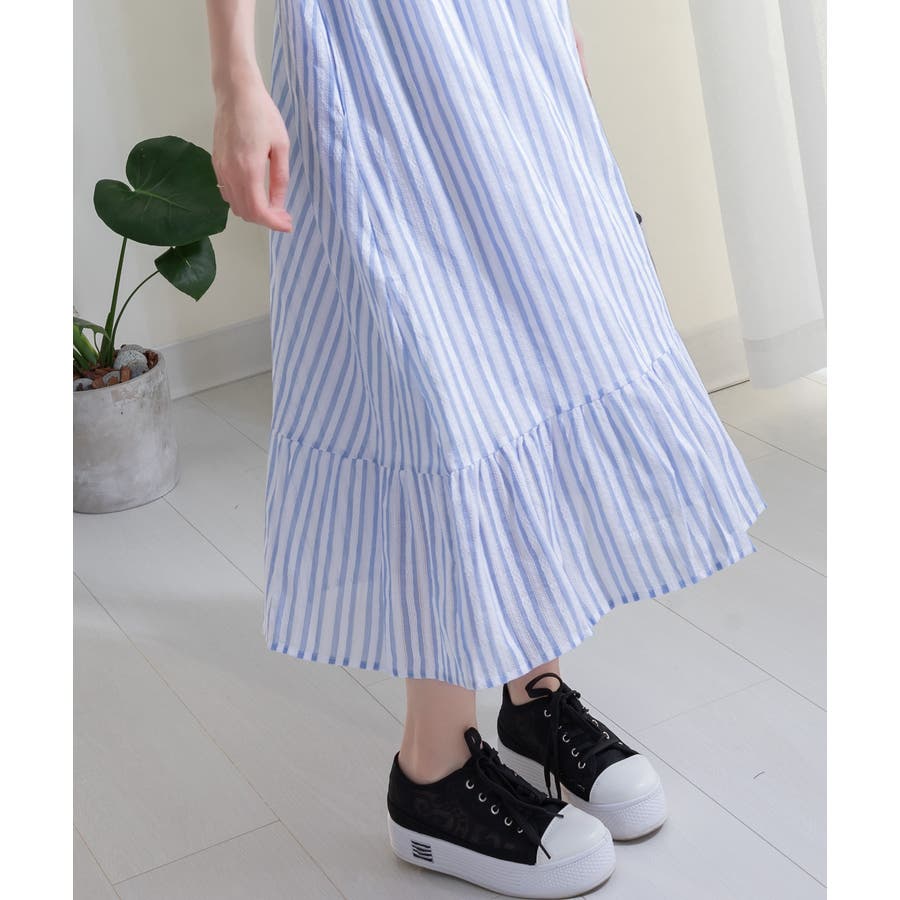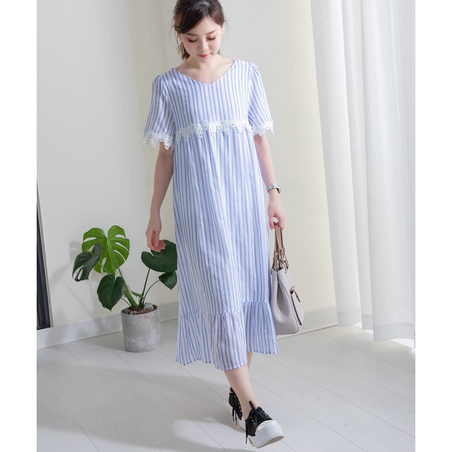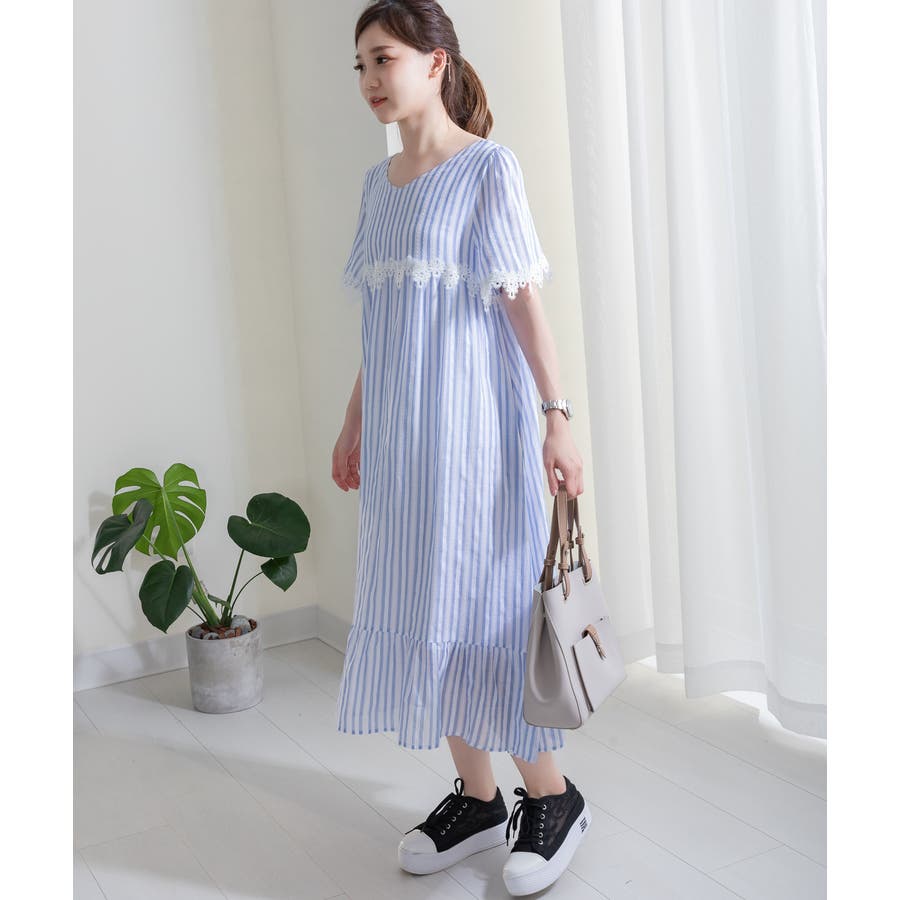コットン素材のからみストライプワンピース