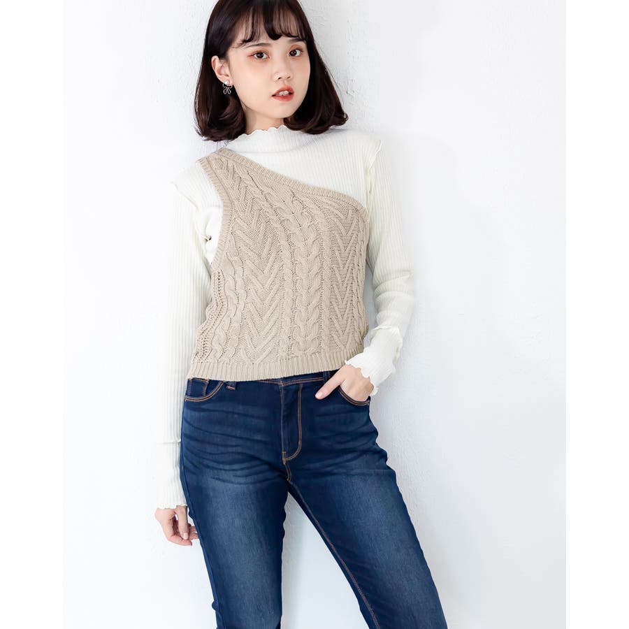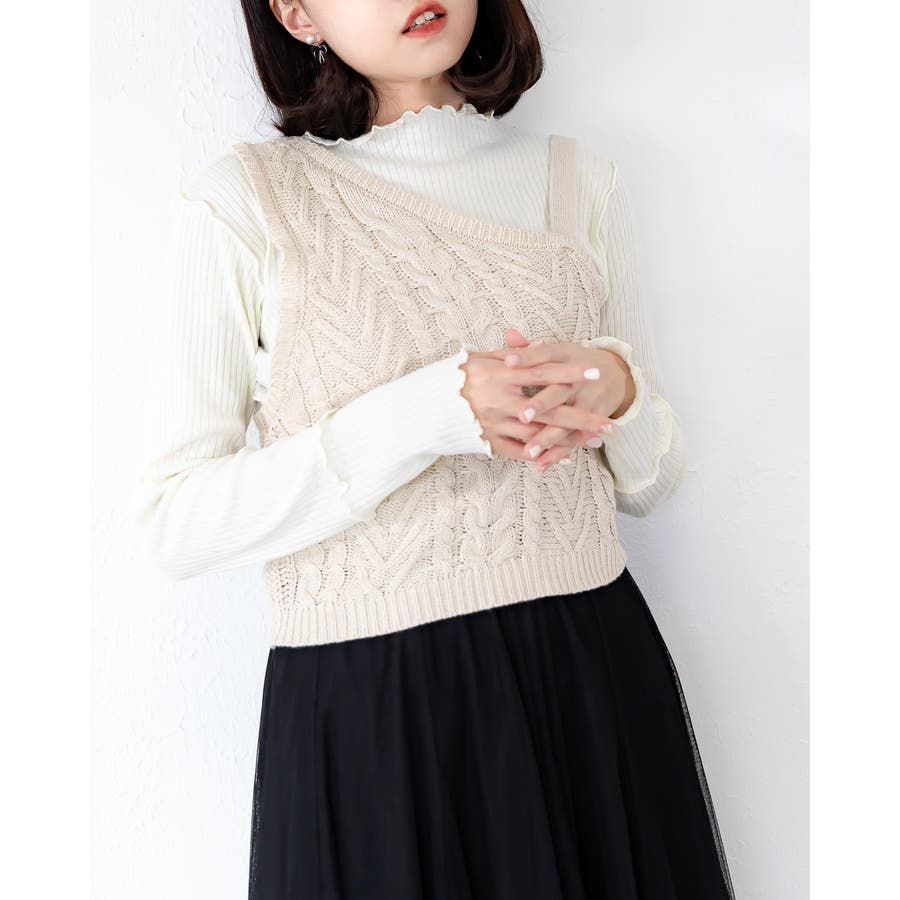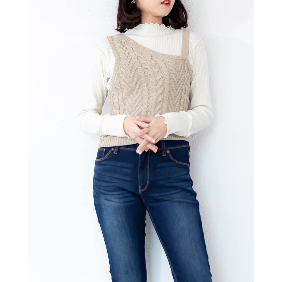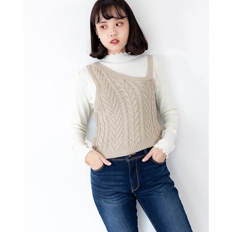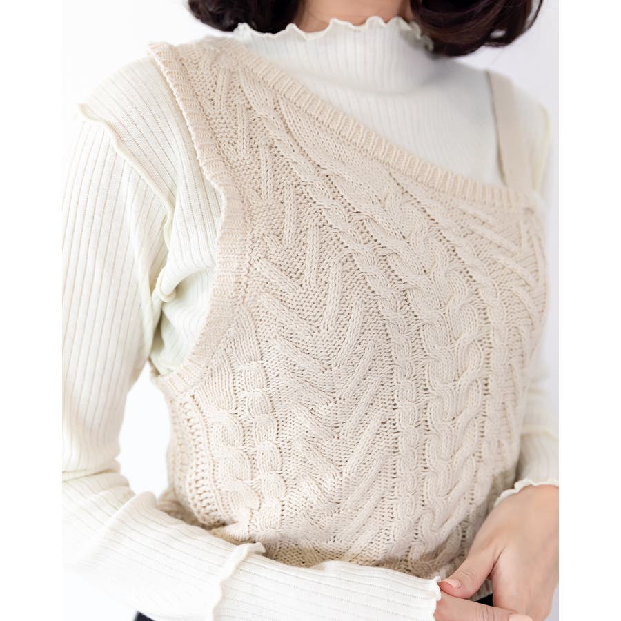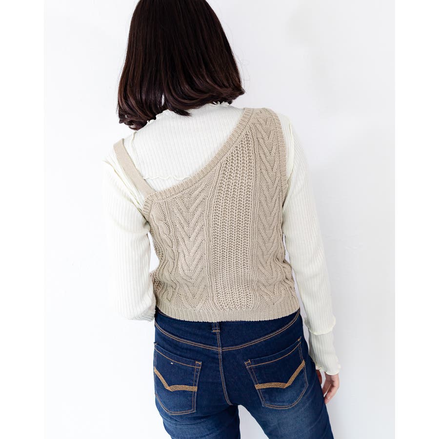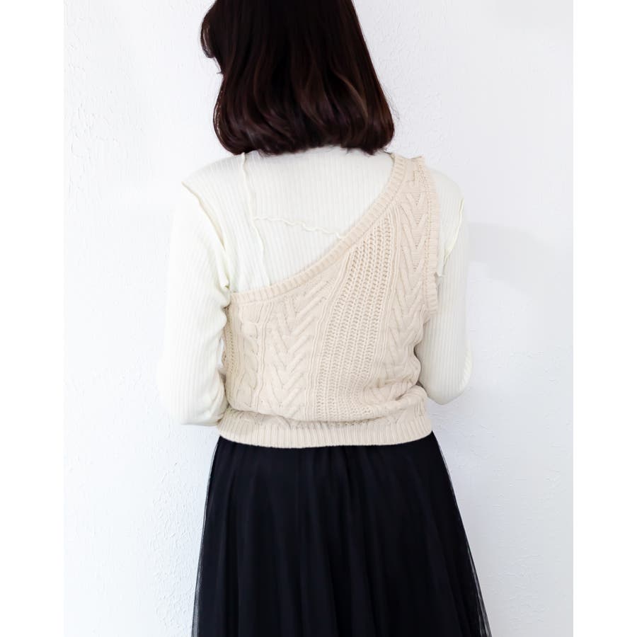 ケーブル編みのワンショルベスト☆