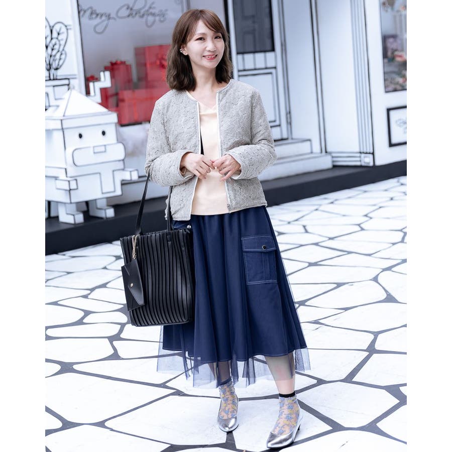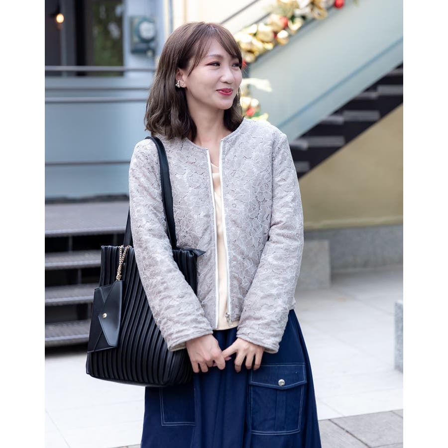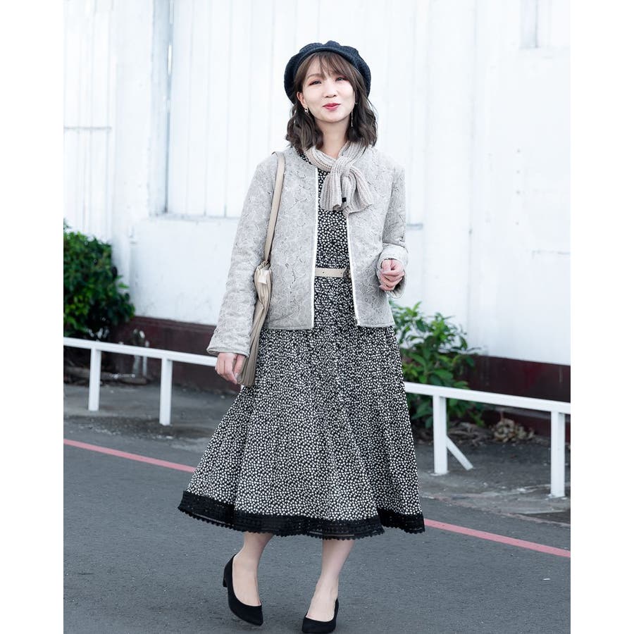花柄レースブルゾンを羽織るだけで抜け感漂う大人の女性に♪