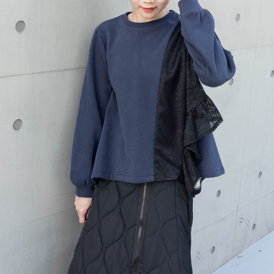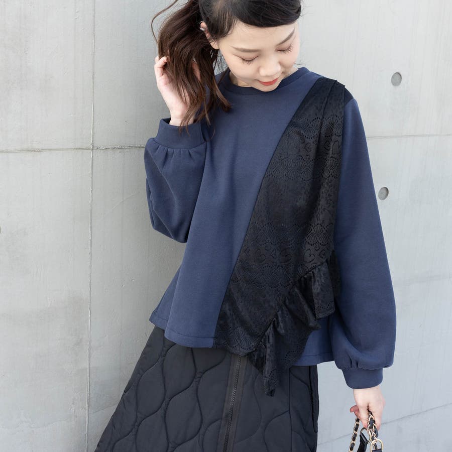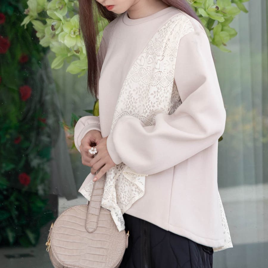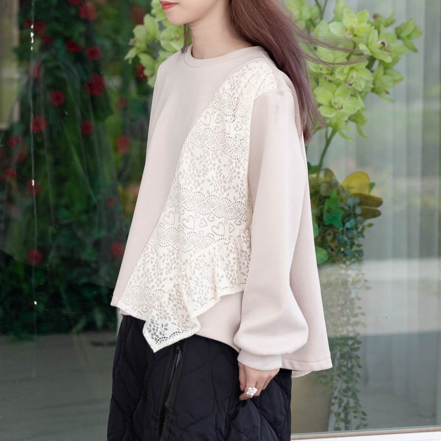 花柄レース付きトレーナー