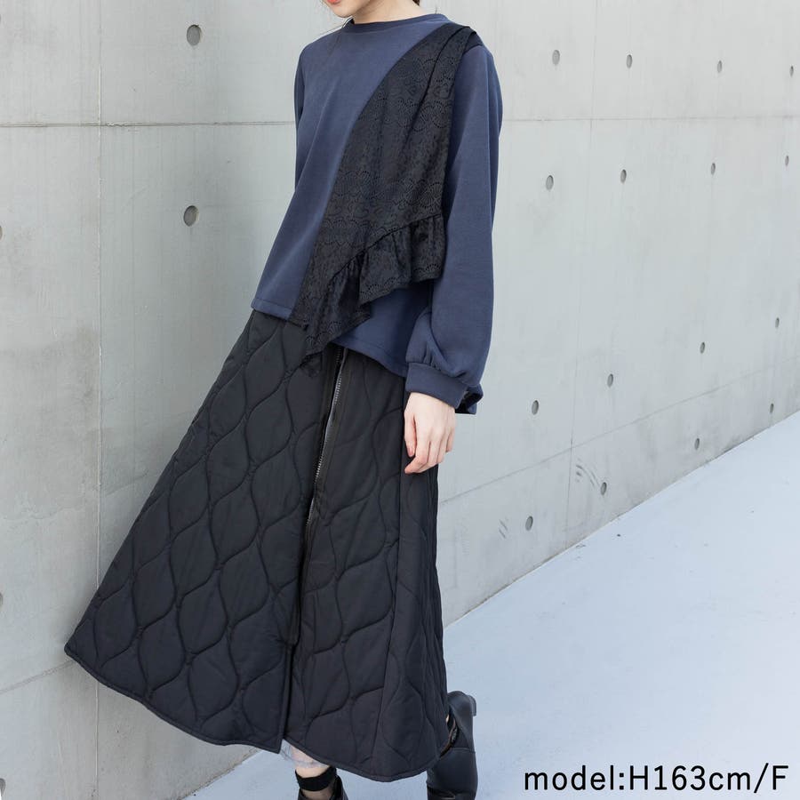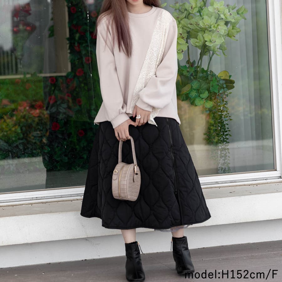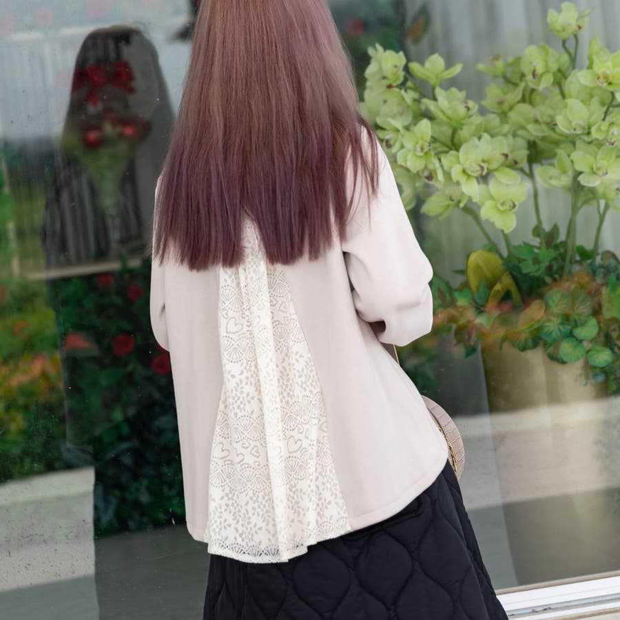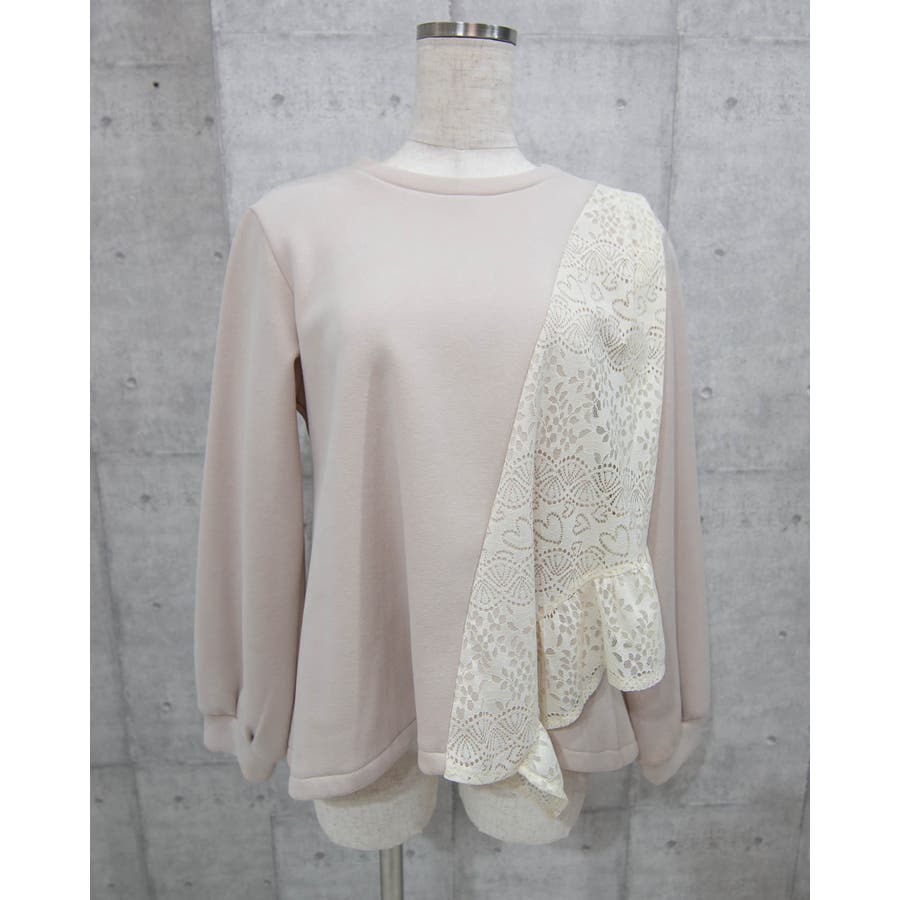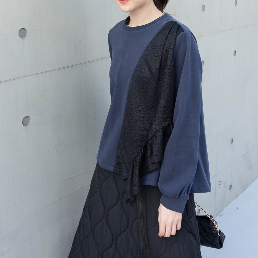 花柄レース付きトレーナー