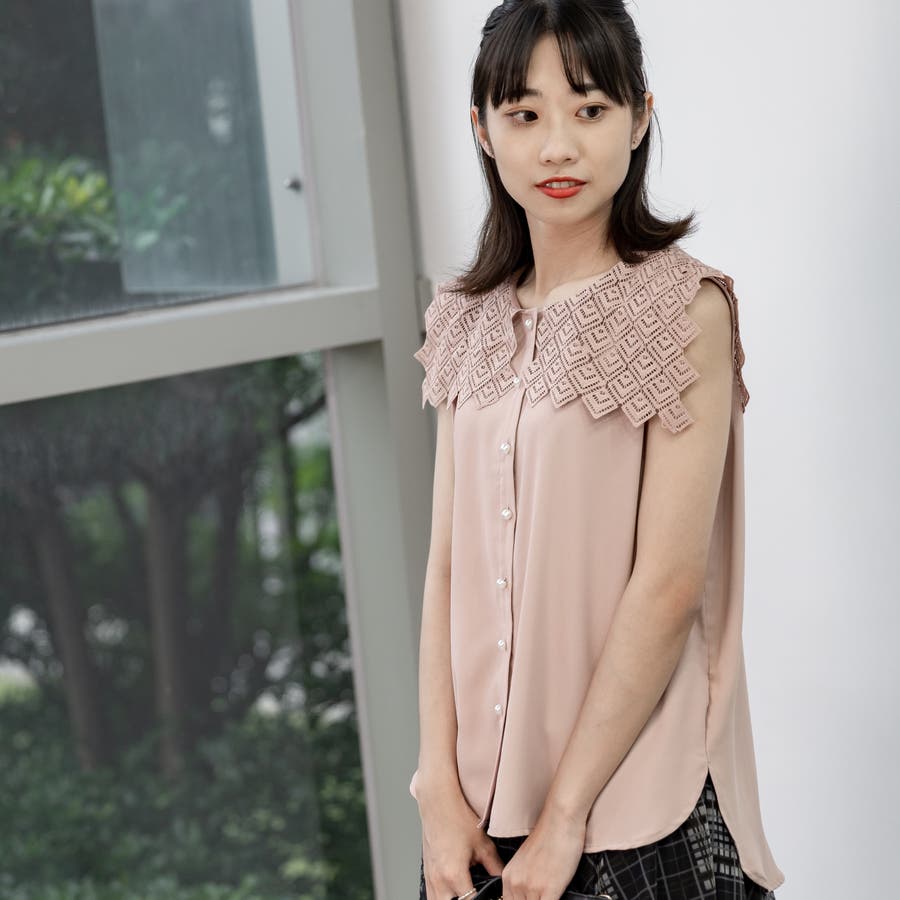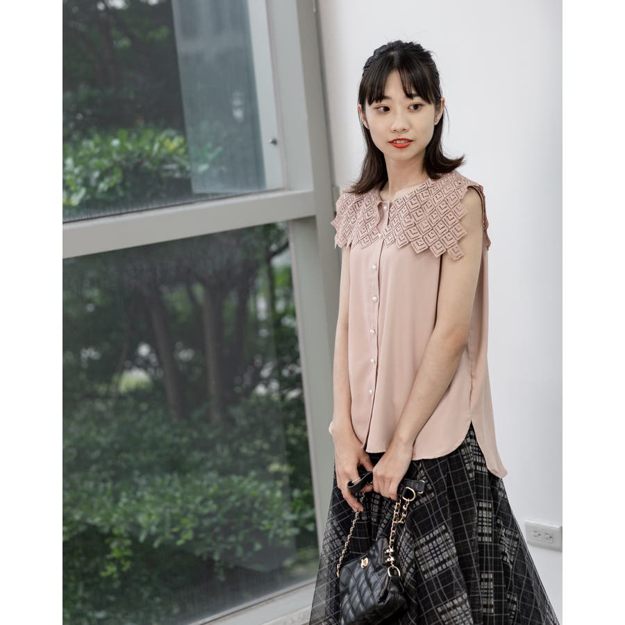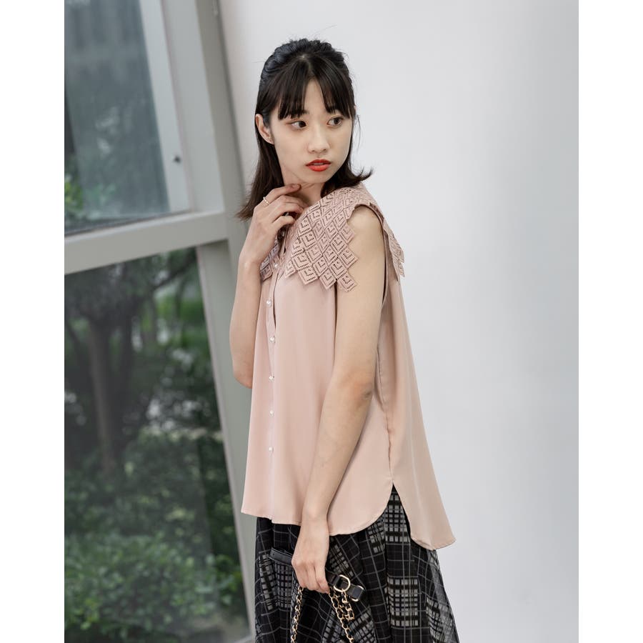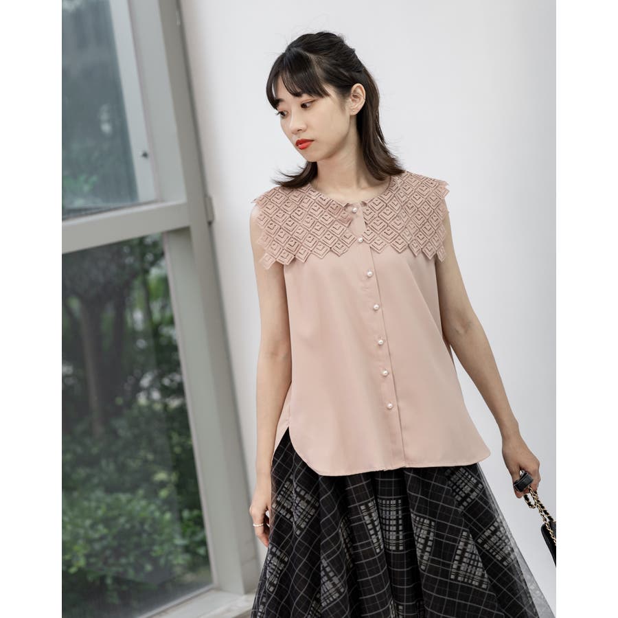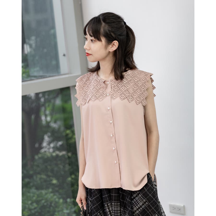 レース襟ノースリーブブラウス