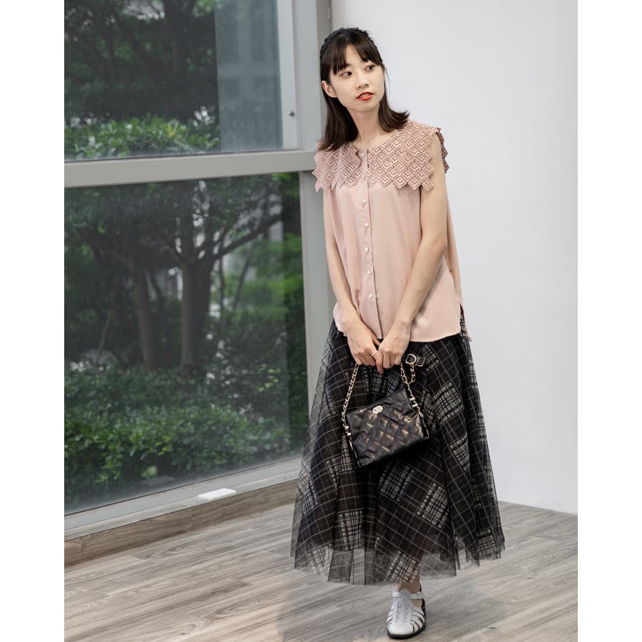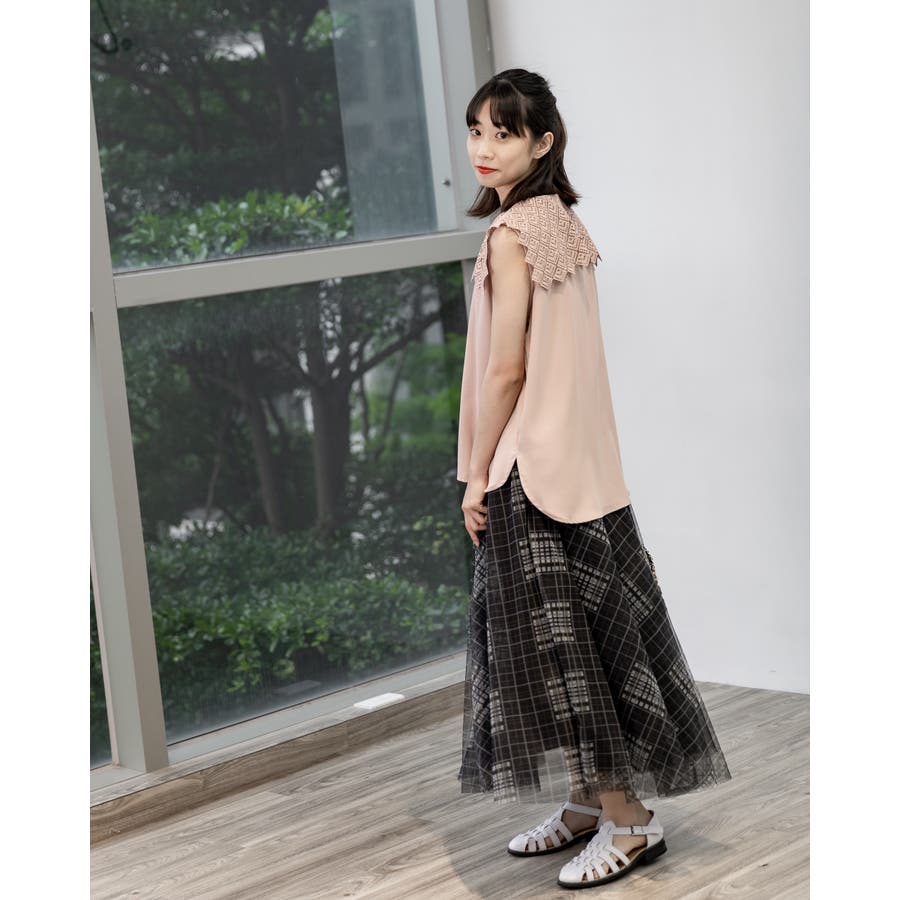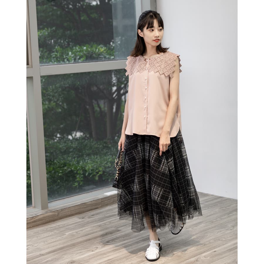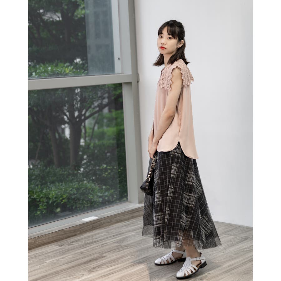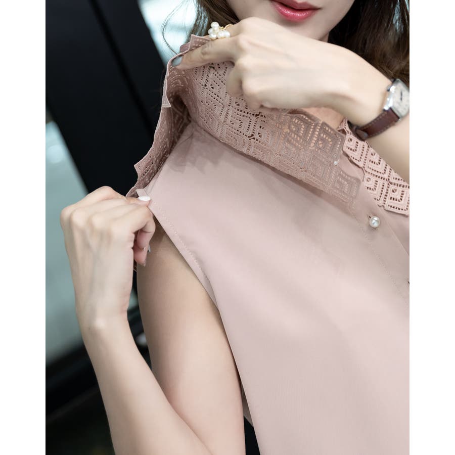 レース襟ノースリーブブラウス