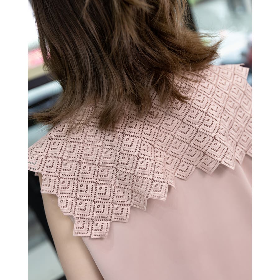 大きめのレース襟でレディライクなデザインに仕上げたブラウス。