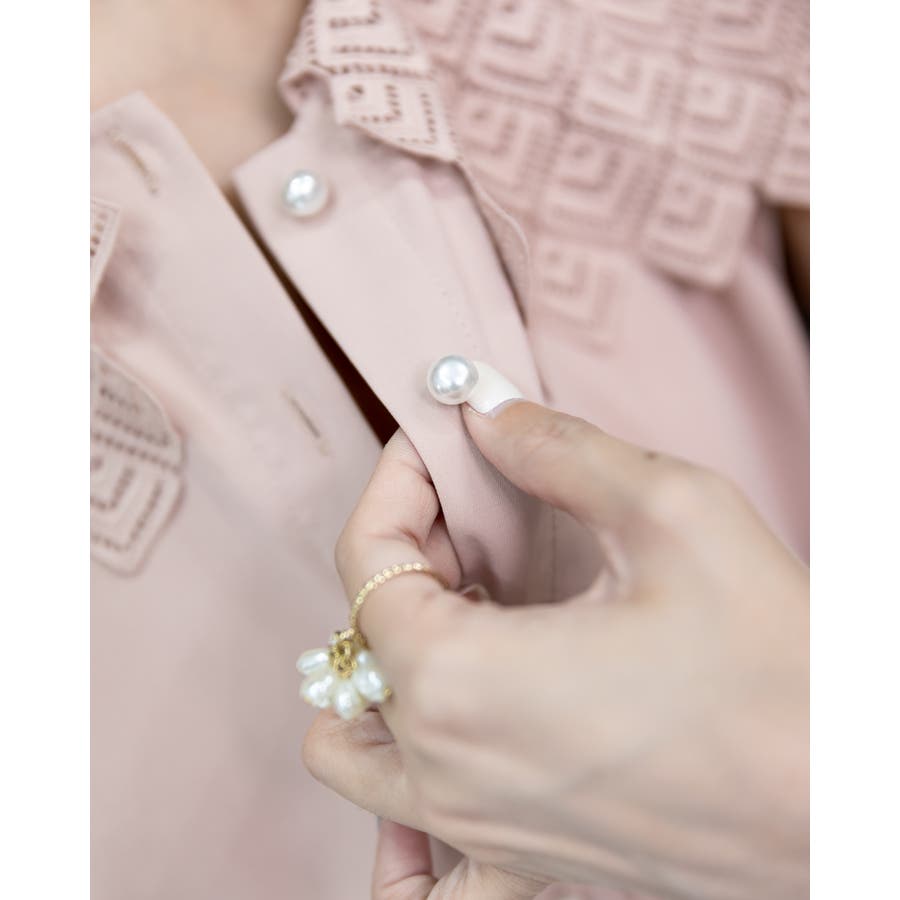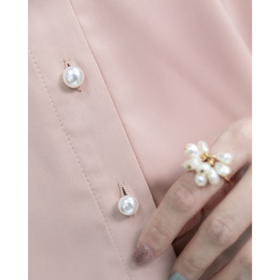 真珠ボタンもさりげないポイントに! さらっとしたポリエステル素材を採用。