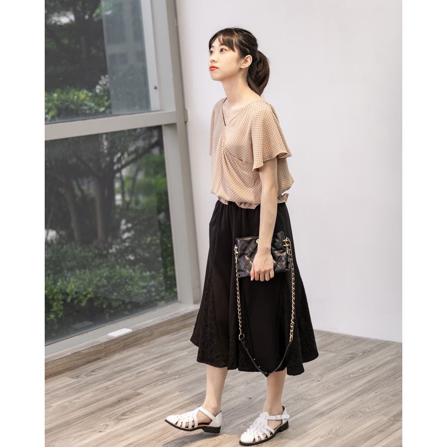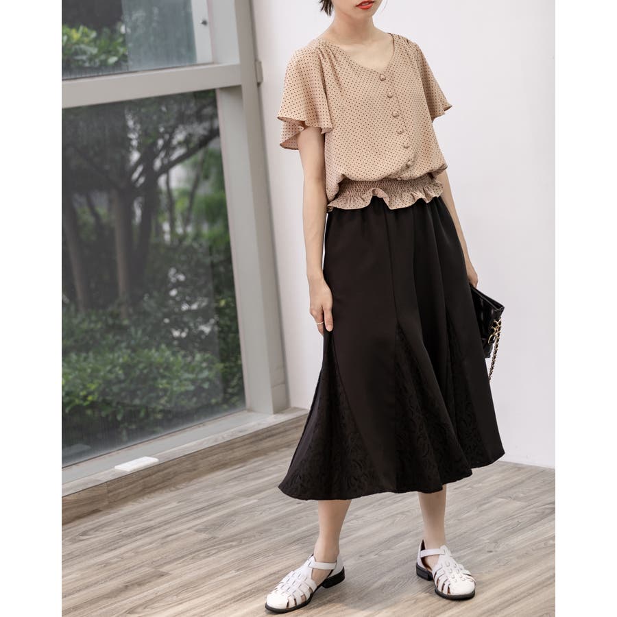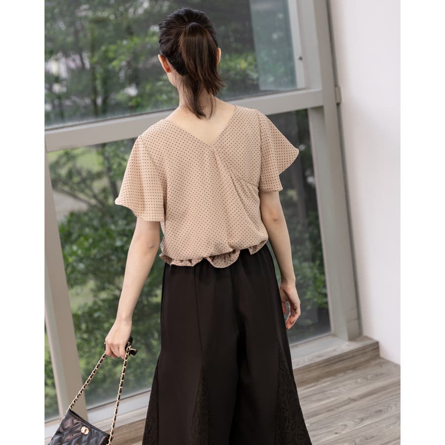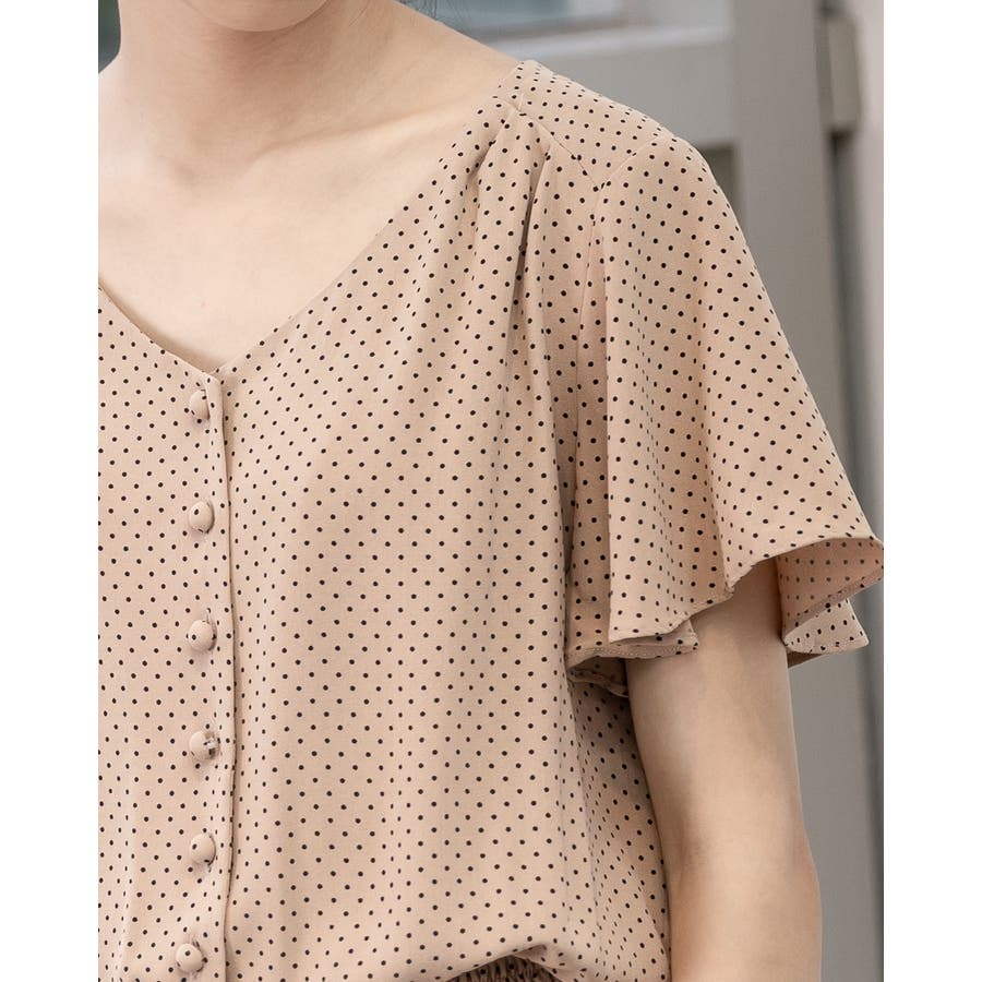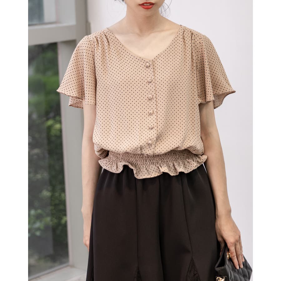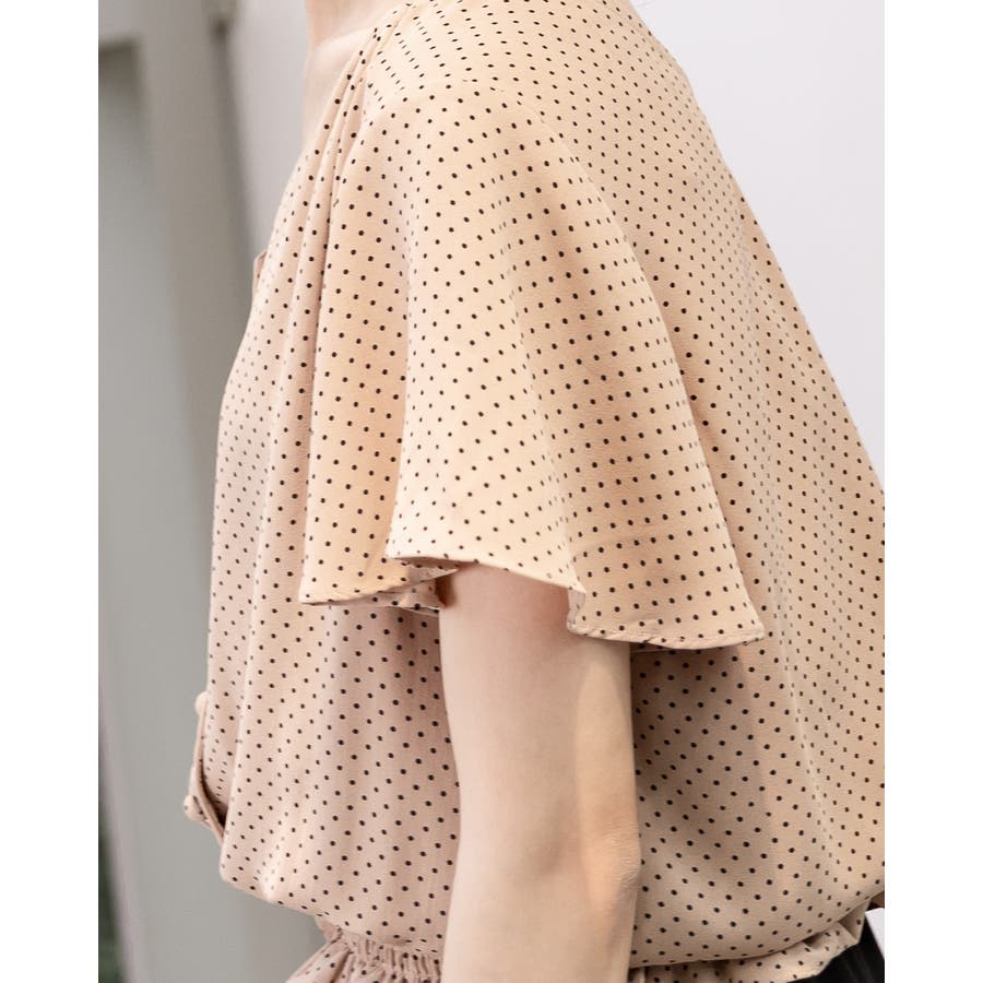2WAYドット柄ウエストギャザーペプラムブラウス