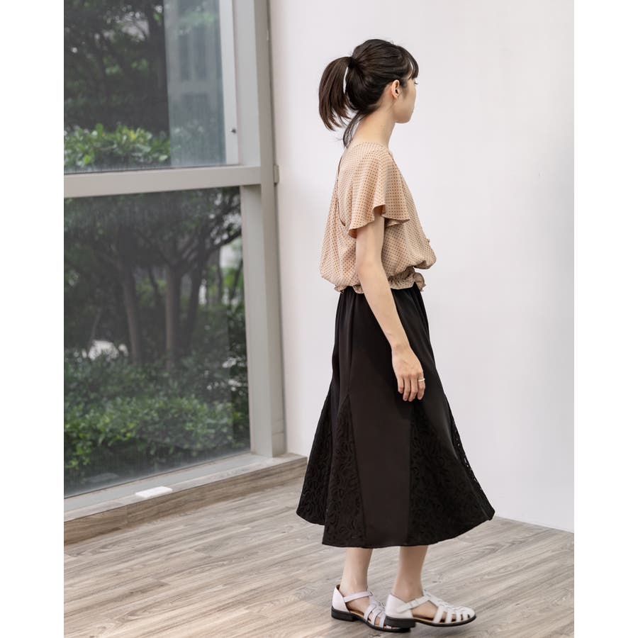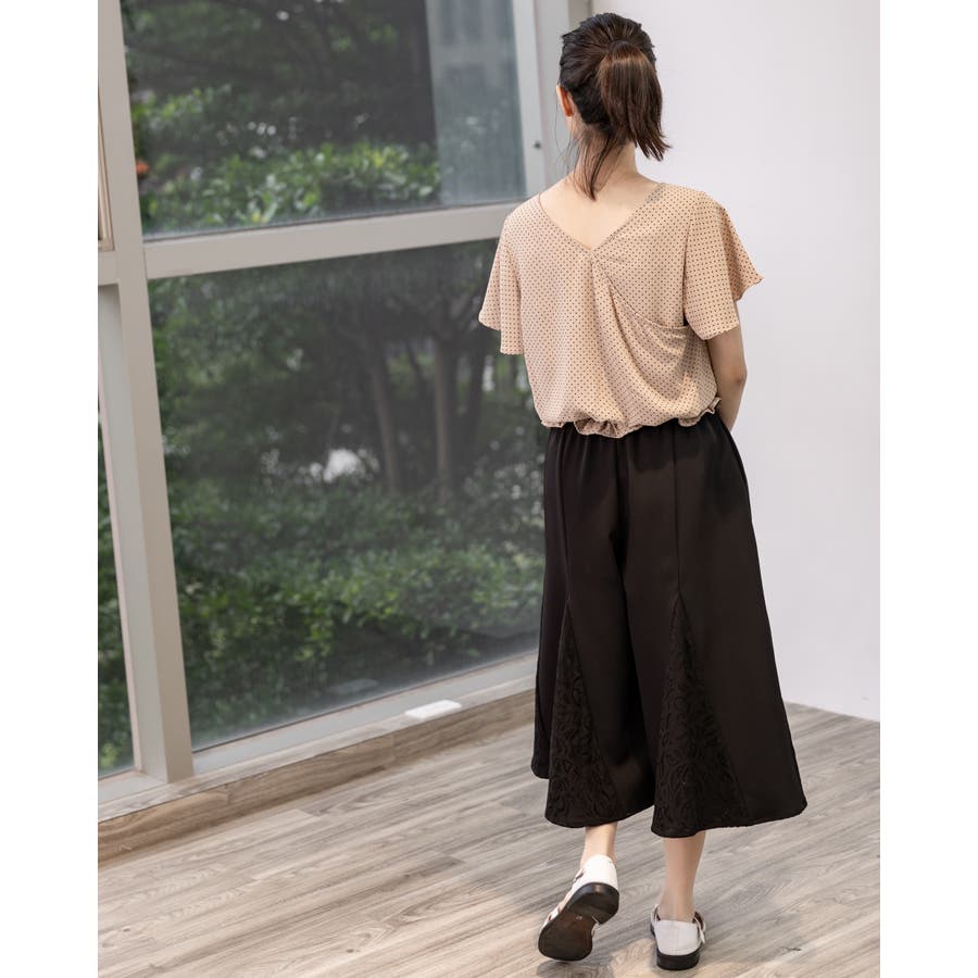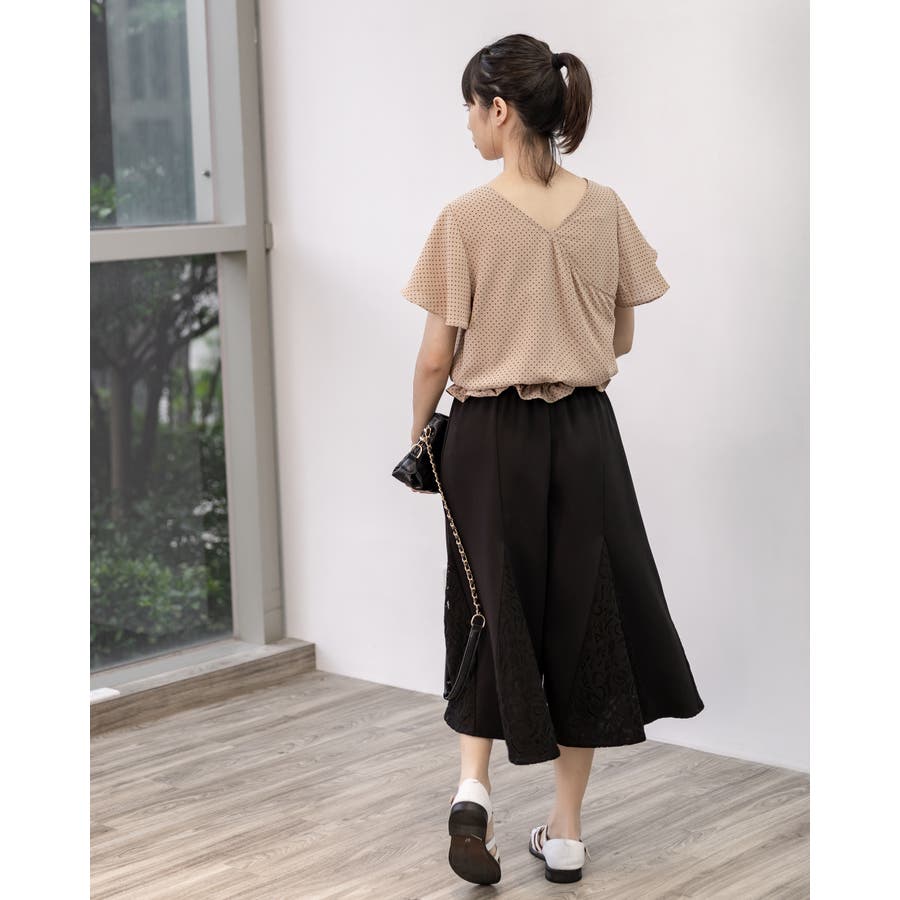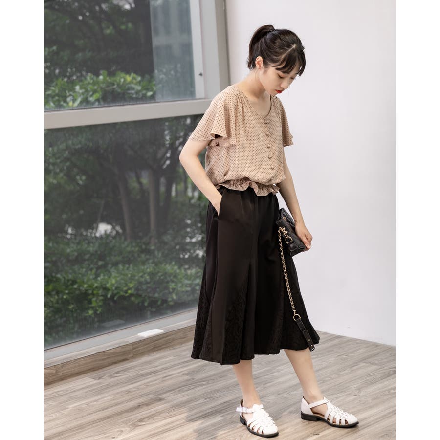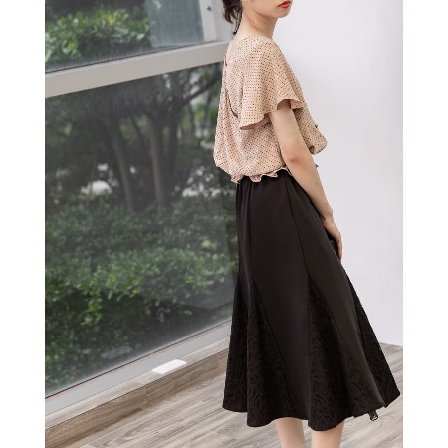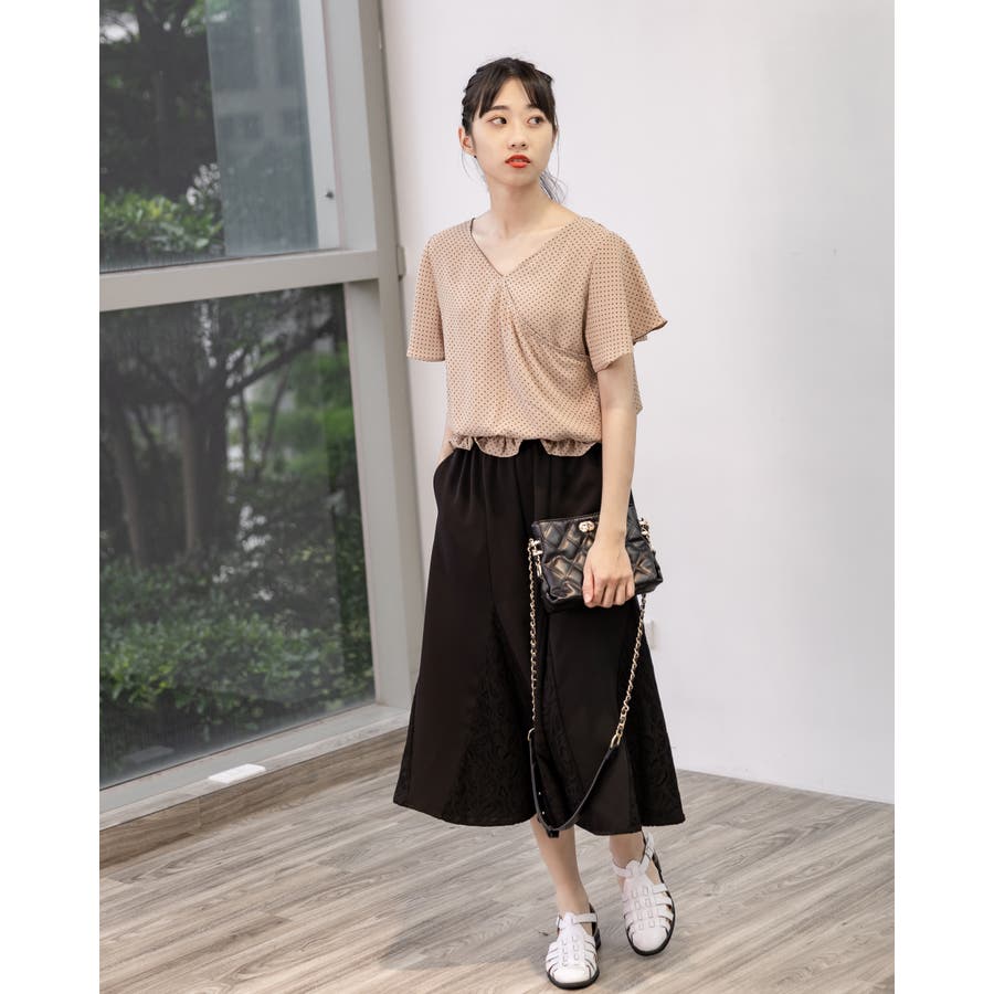 2WAYドット柄ウエストギャザーペプラムブラウス