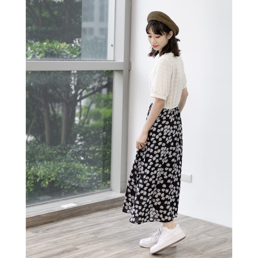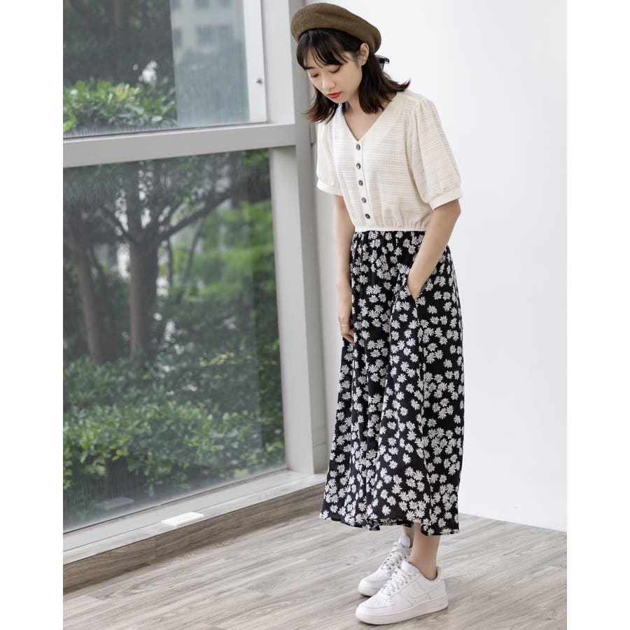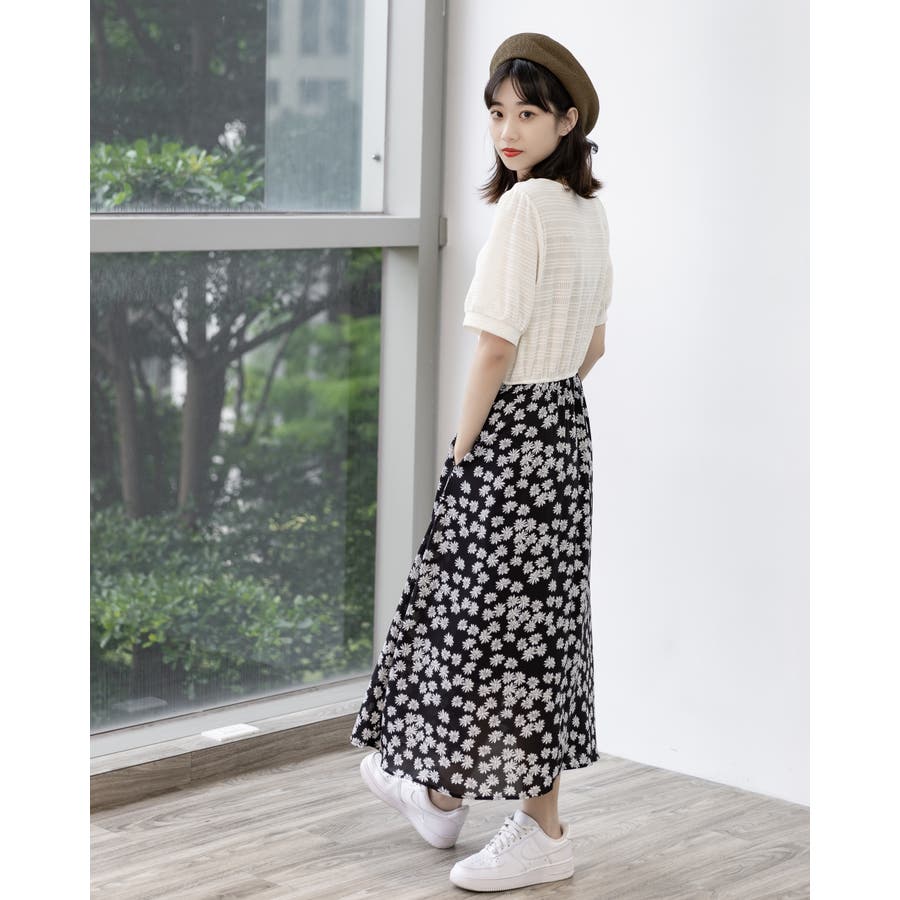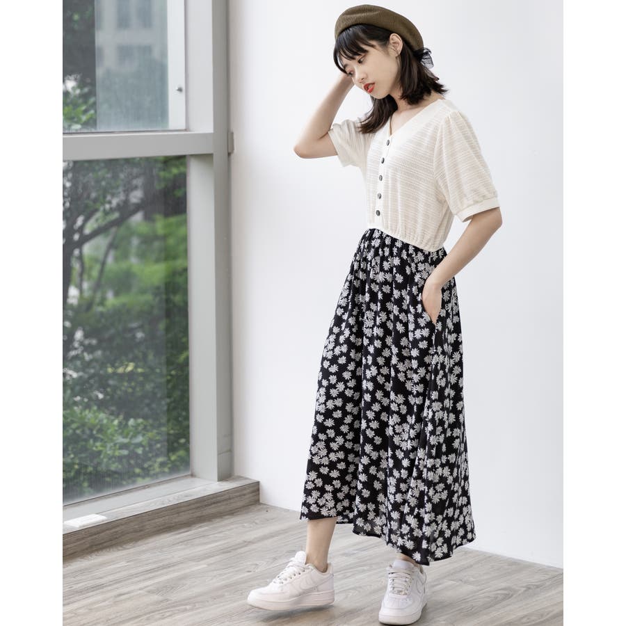 花柄とニットのカラーを配色にすることで、トップス&ボトムスに見えるのもこだわりポイントです。