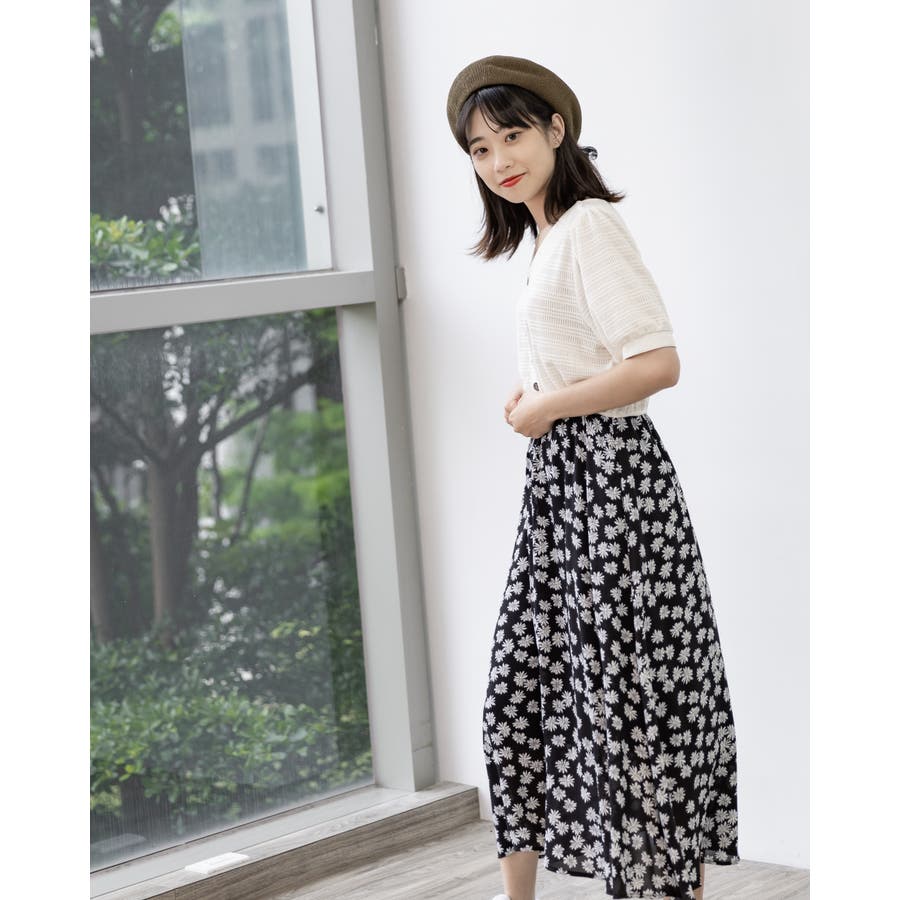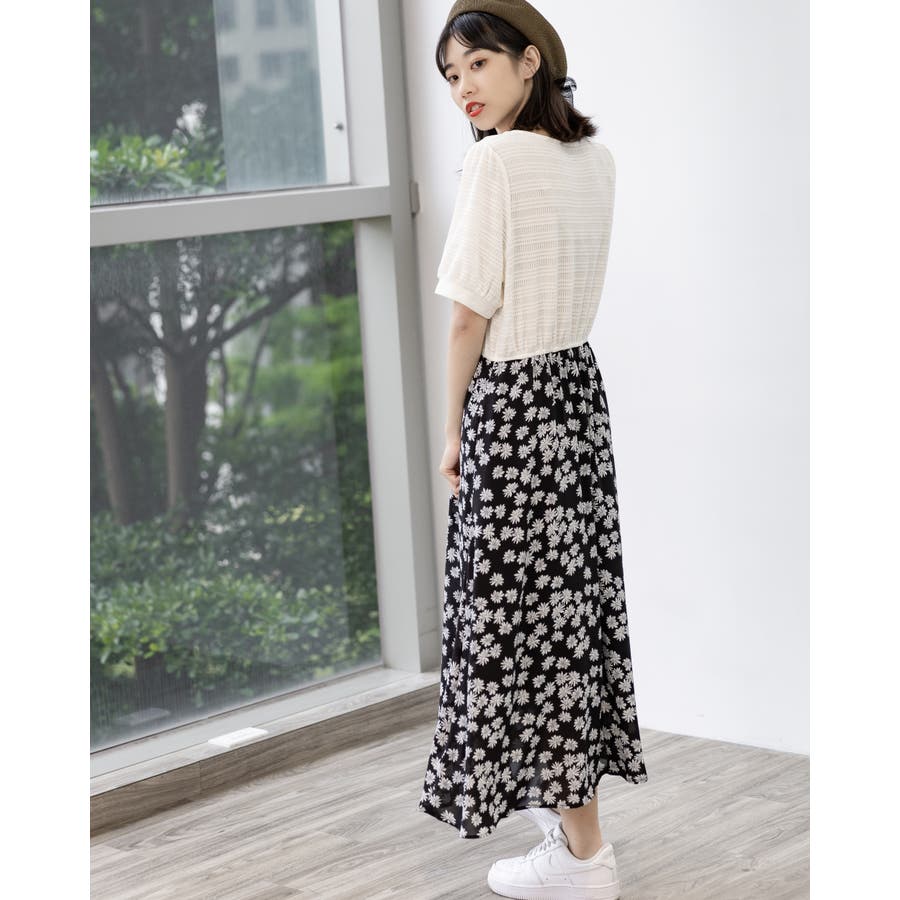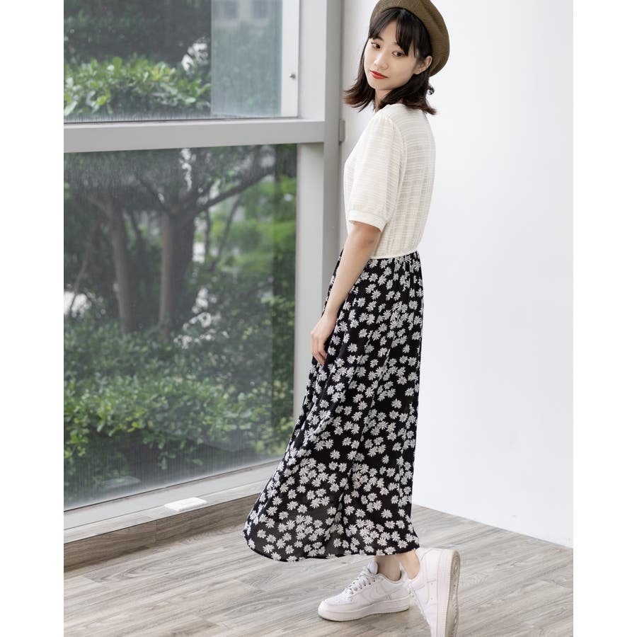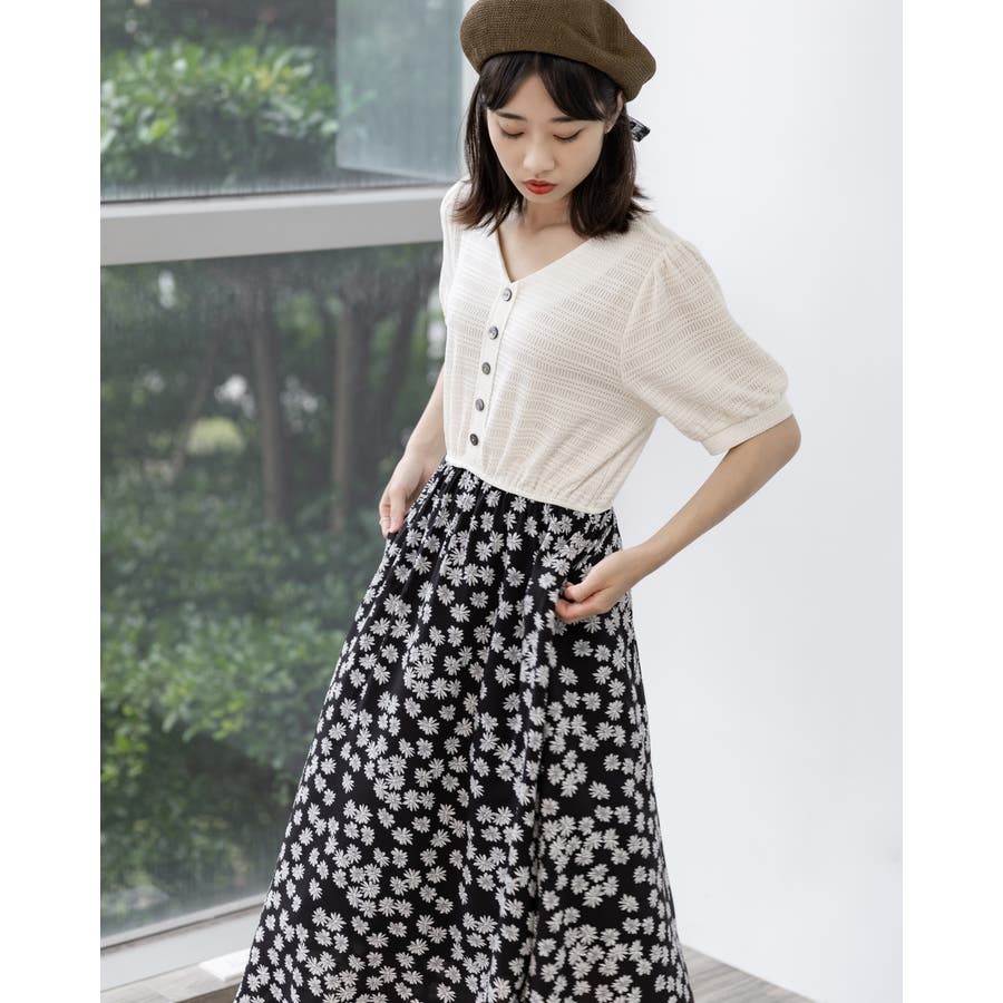 花柄とニットのカラーを配色にすることで、トップス&ボトムスに見えるのもこだわりポイントです。