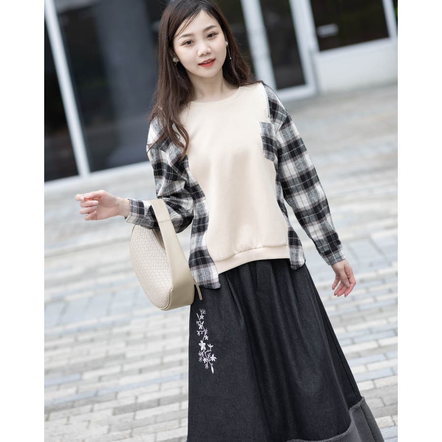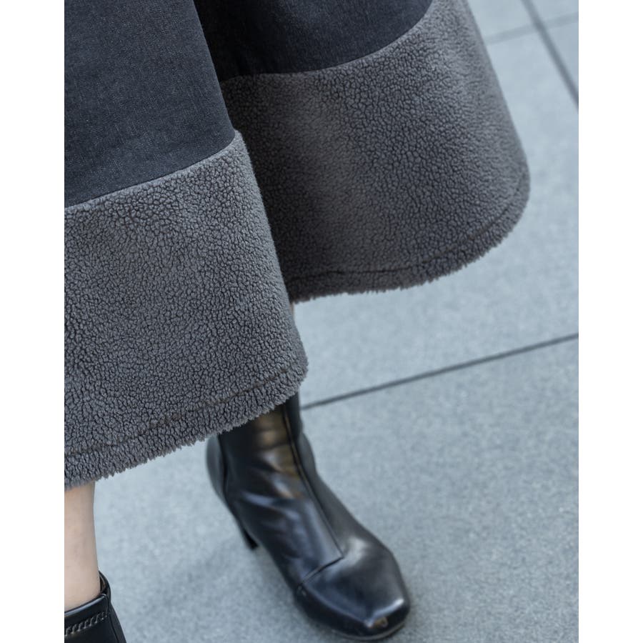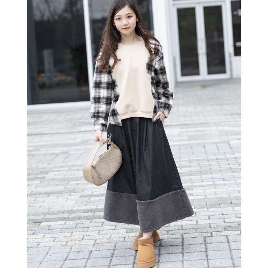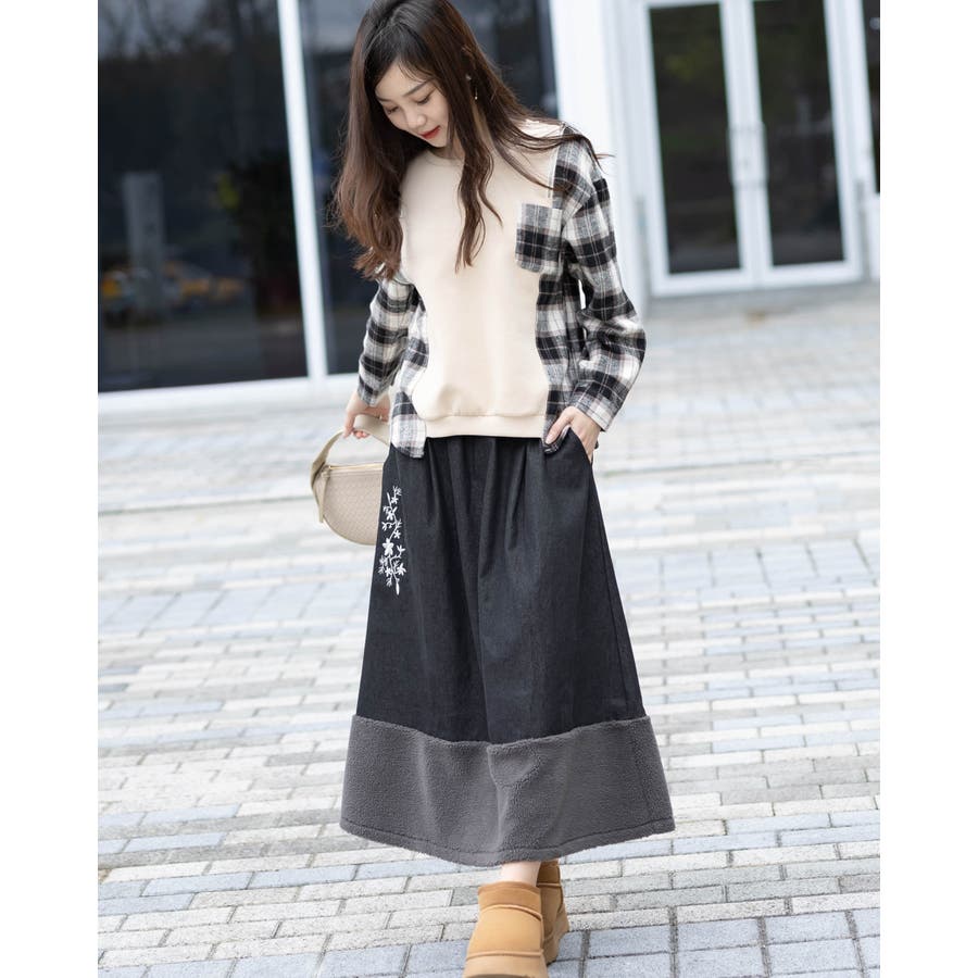 もこもこロングスカート ポケット花柄刺繍