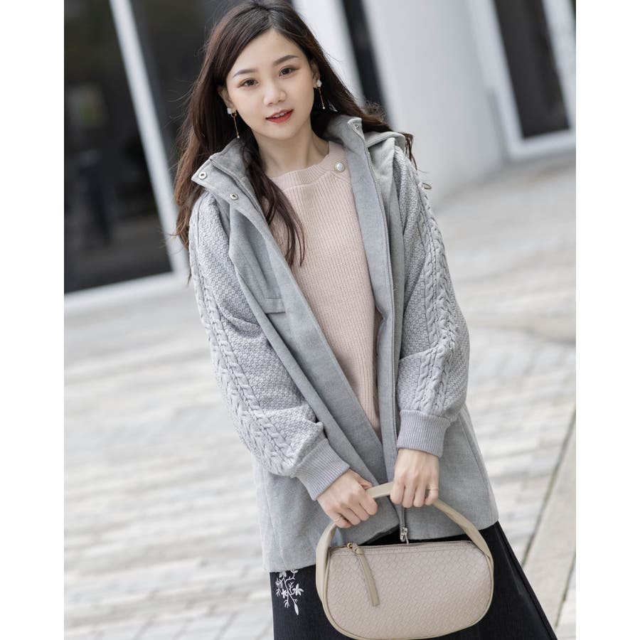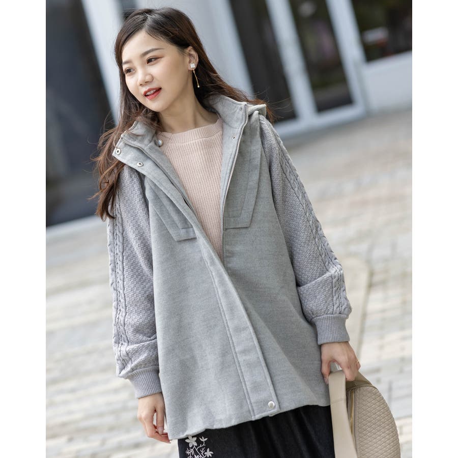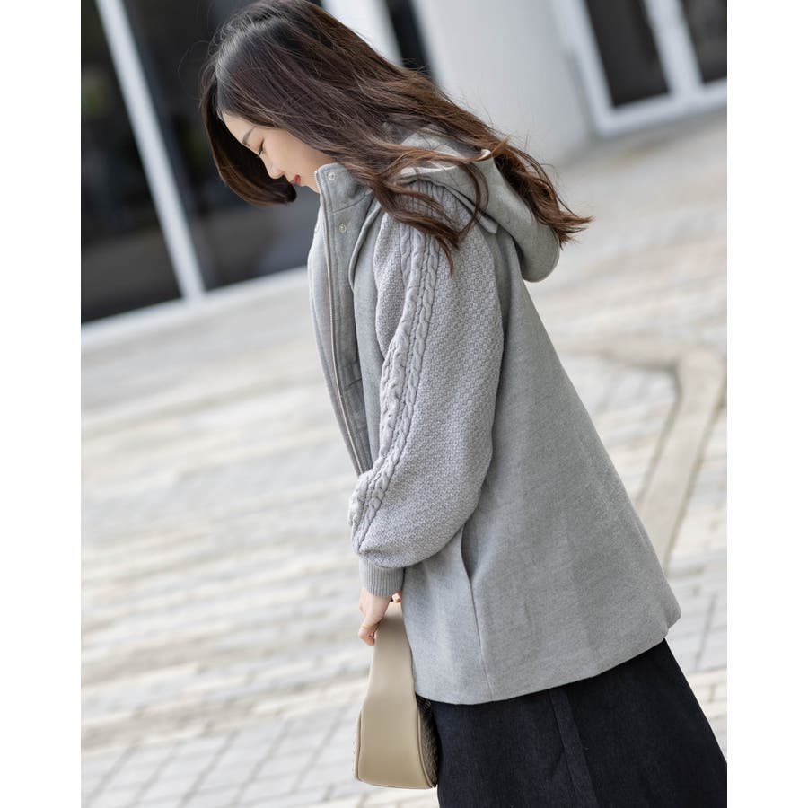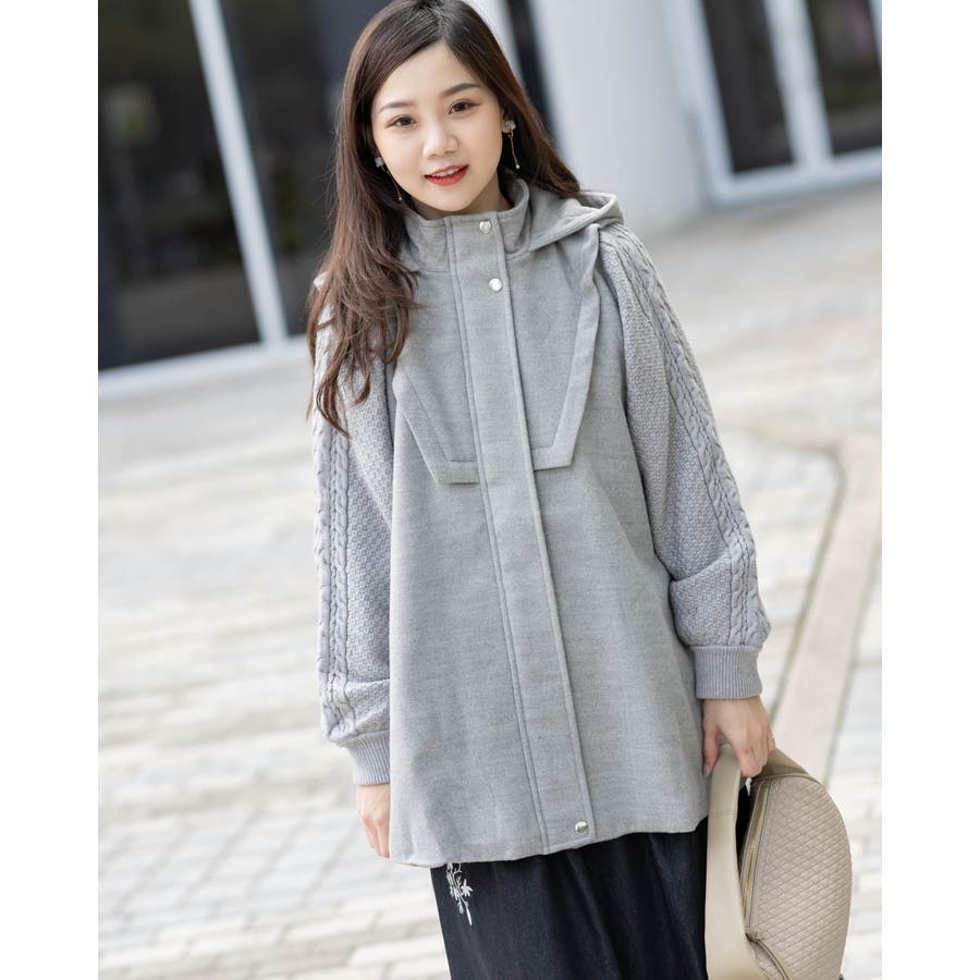 フード付き編み込みニットコート