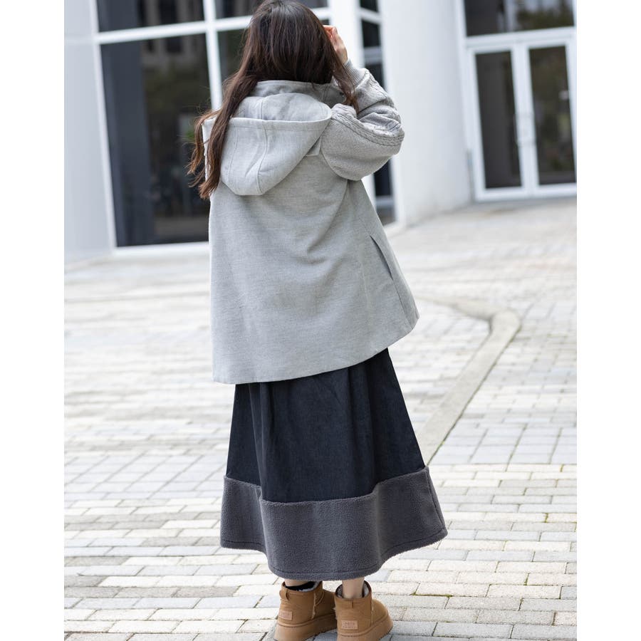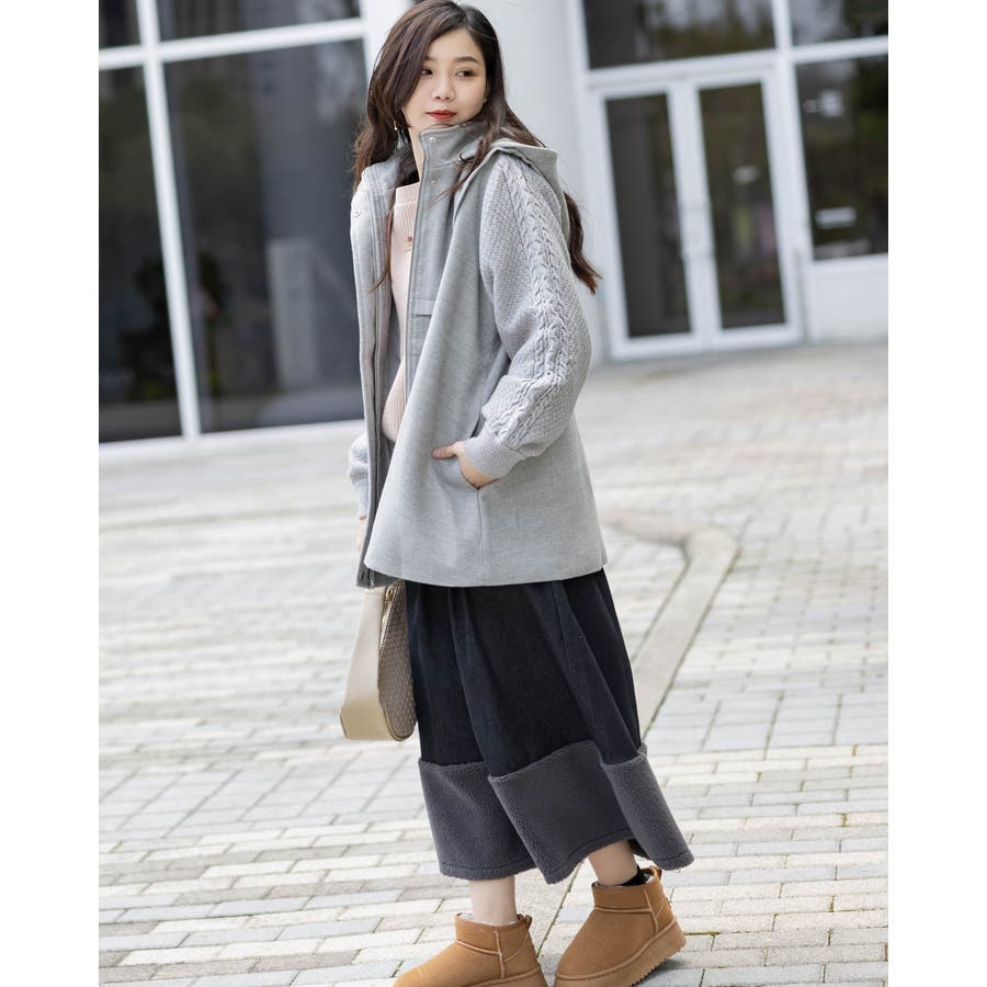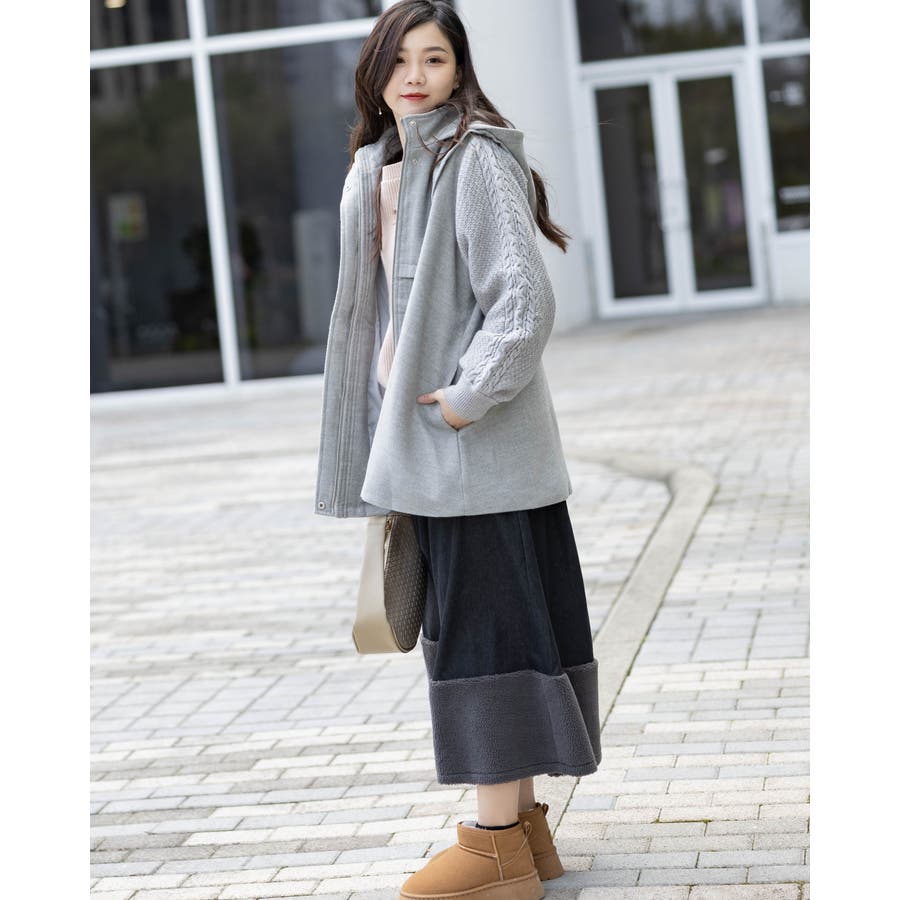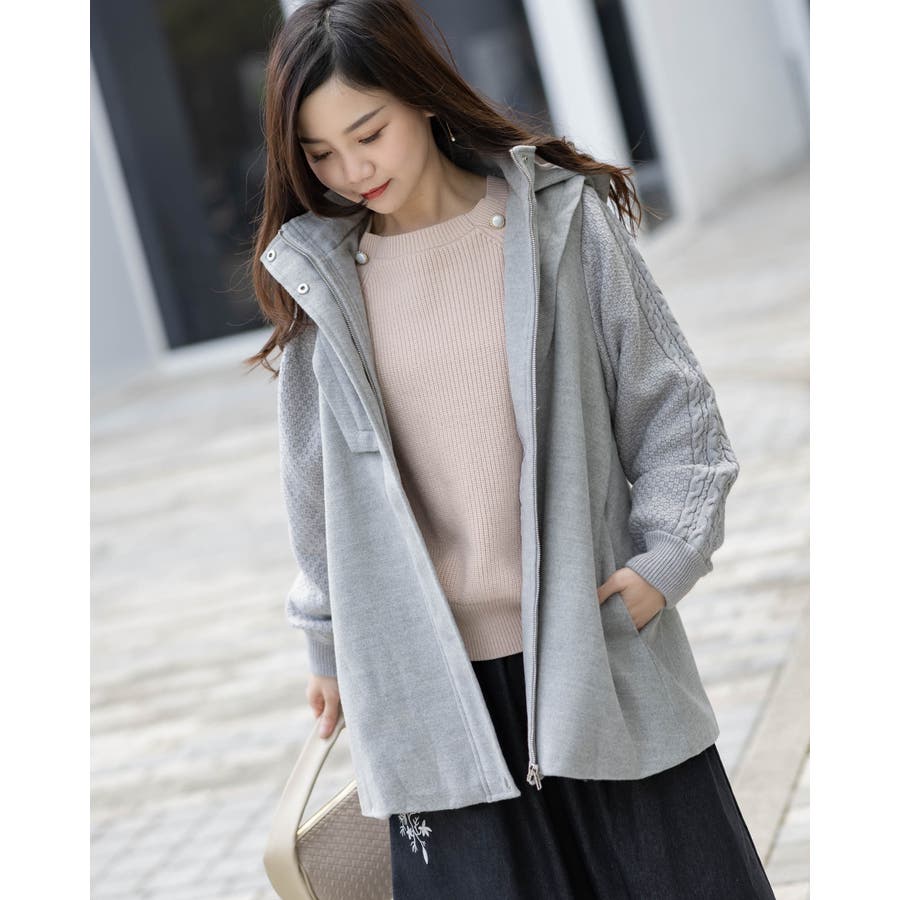 フード付き編み込みニットコート