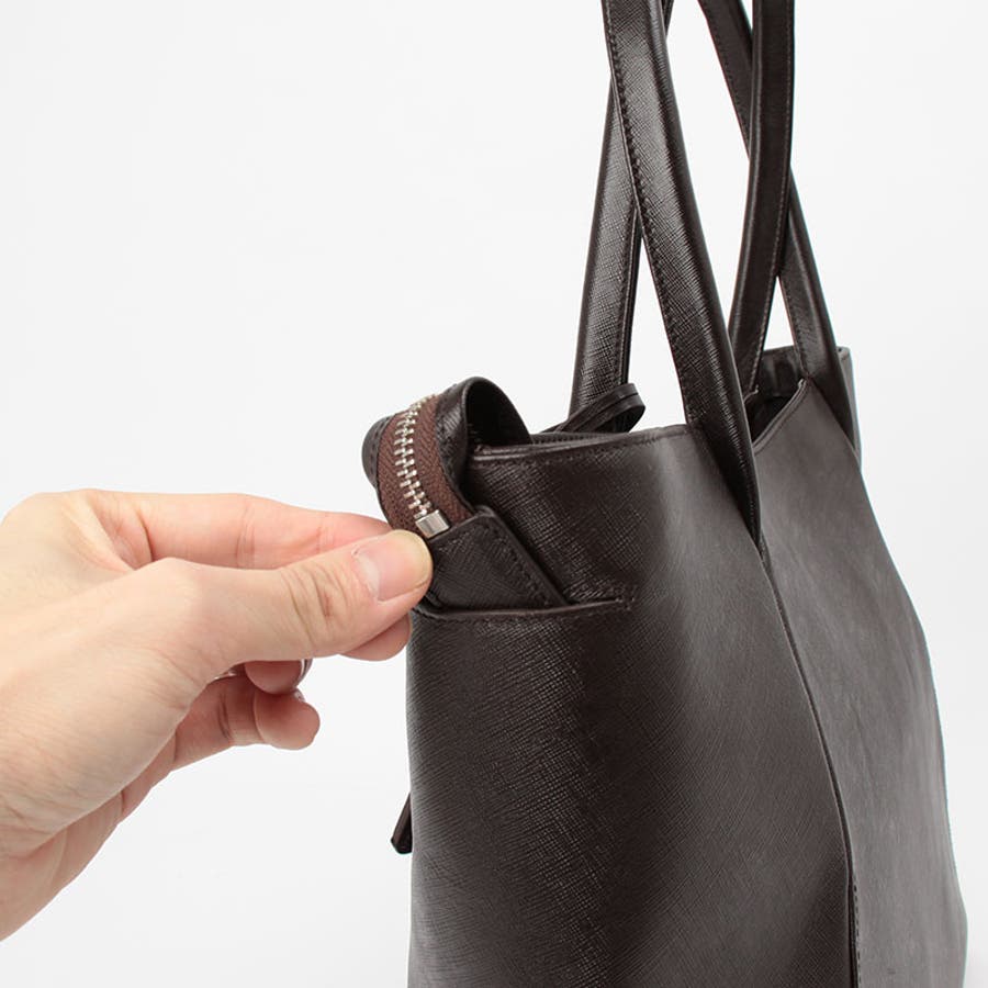 前胴部分にはパスケースなどの小物を入れられるポケットがありますので、瞬時の出し入れが容易です。内装は貴重品なども安心なファスナーポケットや 小物入れが付いておりポケット類も豊富になっています。
