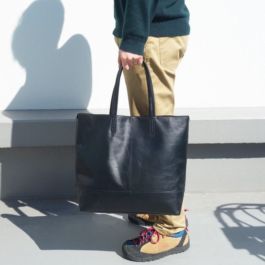 余計なものを削ぎ落し、できるだけシンプルに仕上げたスムース牛革トートバッグ。