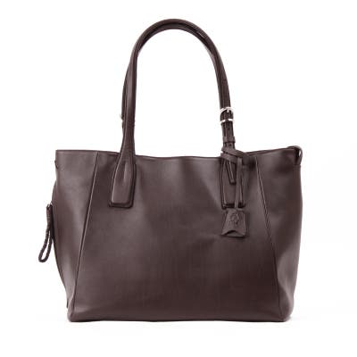 ハンドルは持ち手の長さを5段階まで調節することが出来ます。手持ち・肩掛けそれぞれに合った長さにすることでご自身のライフスタイルに合わせた使い方が可能となっています。バックルは深い色のレザーとのアクセントになるよう光沢のある素材を採用。シンプルな見た目の中にも遊び心のあるデザインが魅力の商品です。