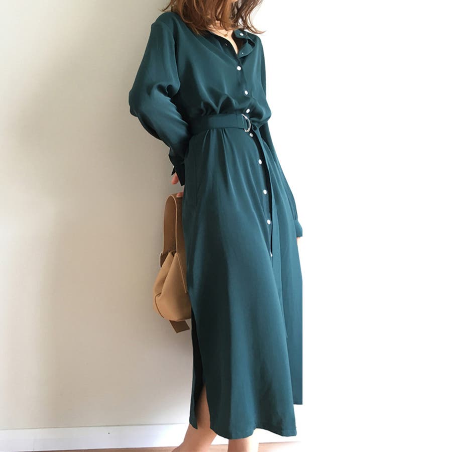 個性的なカラーのアイテムを楽しみたいときは、デザインはシンプルなものをチョイス。シックなデザインのワンピースなら、色が悪目立ちすることなくまとまります。バッグなどのアイテムをホワイト・ベージュ系にすることで、色のぶつかりを抑えることもポイント。