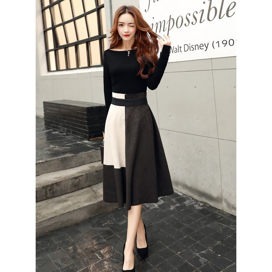デザインが個性的なスカートを主役にまとめたコーデ。ホワイトのアクセントが際立つように、その他のアイテムをダークトーンで統一することがポイント。モノトーンでそろえると高見えしやすくなるので、プチプラコーデにはおすすめ♪