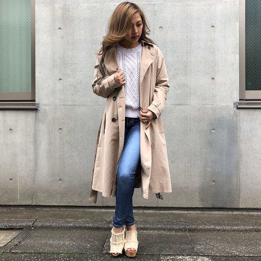この商品の詳細・購入はこちら 定番のトレンチコートは、デニムスタイルで楽しむ♪