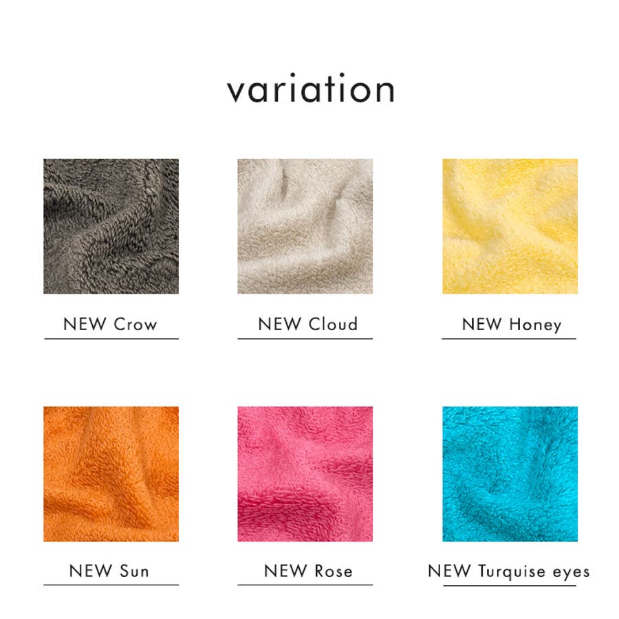 通常の綿花より極甘に撚った、とてもソフトでバルキー性に富んだハネル糸、またクラボウとの共同開発によるオリジナルの糸無撚糸ピアノラを使用。ふっくらとした肌触りを実現しつつ、吸水性や速乾性など、タオルとしての上質な使用感も追求した高級タオル素材です。太陽光発電の電力で織り上げているので、CO2削減に貢献しています。淡い色合いのペールカラー、彩り豊かなビビットカラーなど全14色のカラーバリエーション。ご家族で揃えたり、お世話になった方へのプチギフトとしても喜ばれます。