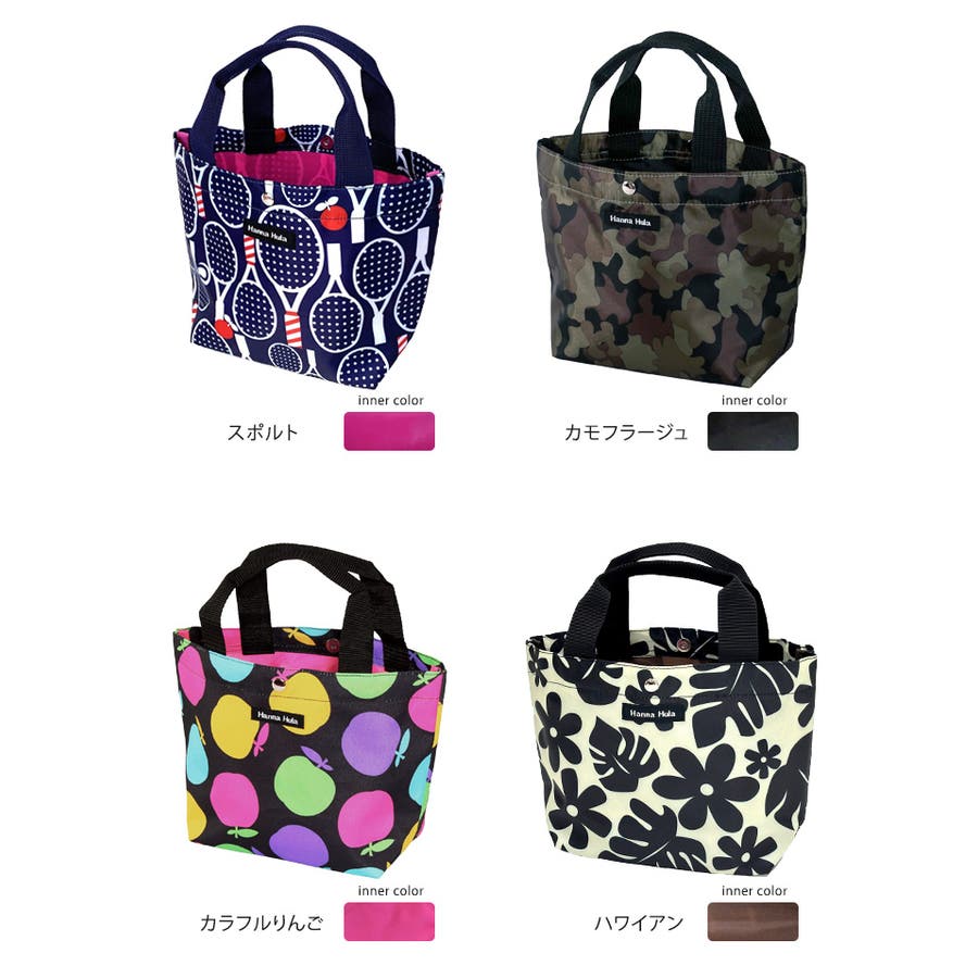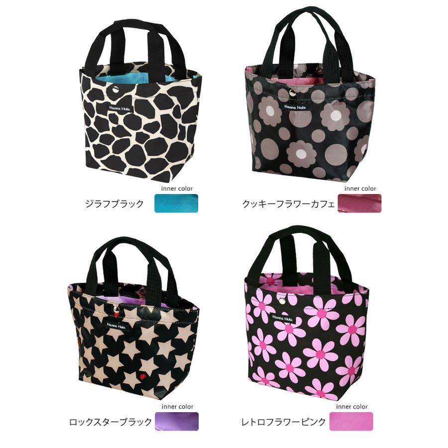 | カラー | ボーダーレッド / ボーダーグリーン / ギンガムブラック / ギンガムレッド / ポルカブラック / バブル / ジラフブラック / クッキーフラワーカフェ / ロックスターブラック / レトロフラワーピンク / スポルト / カモフラージュ / カラフルりんご / ハワイアン |