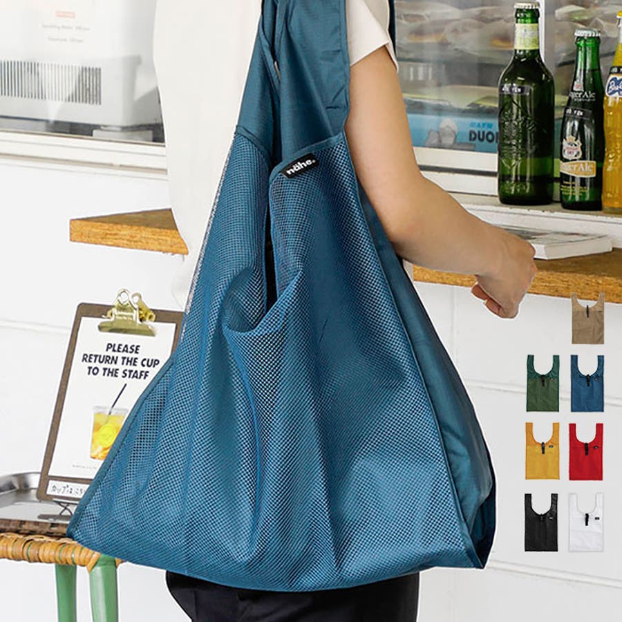 普段の買い物はもちろん、旅先などでのサブバッグとしても見劣りしないオシャレなデザインのエコバッグ。前面のメッシュポケットには、生鮮食品とは分けたいお手回り品などを収納しておくのに便利です。ベルトの長さが調整できるバックル付きでバッグの口が開かないように留めることができ、折りたたみ時の留め具にもなっています。収納袋が必要ないのでお手軽で袋をなくす心配もありません。ユニセックスでお使い頂けるので、ご家族やグループでのご使用にもオススメ◎エコバッグに抵抗のある方でも持ちやすいデザインです。