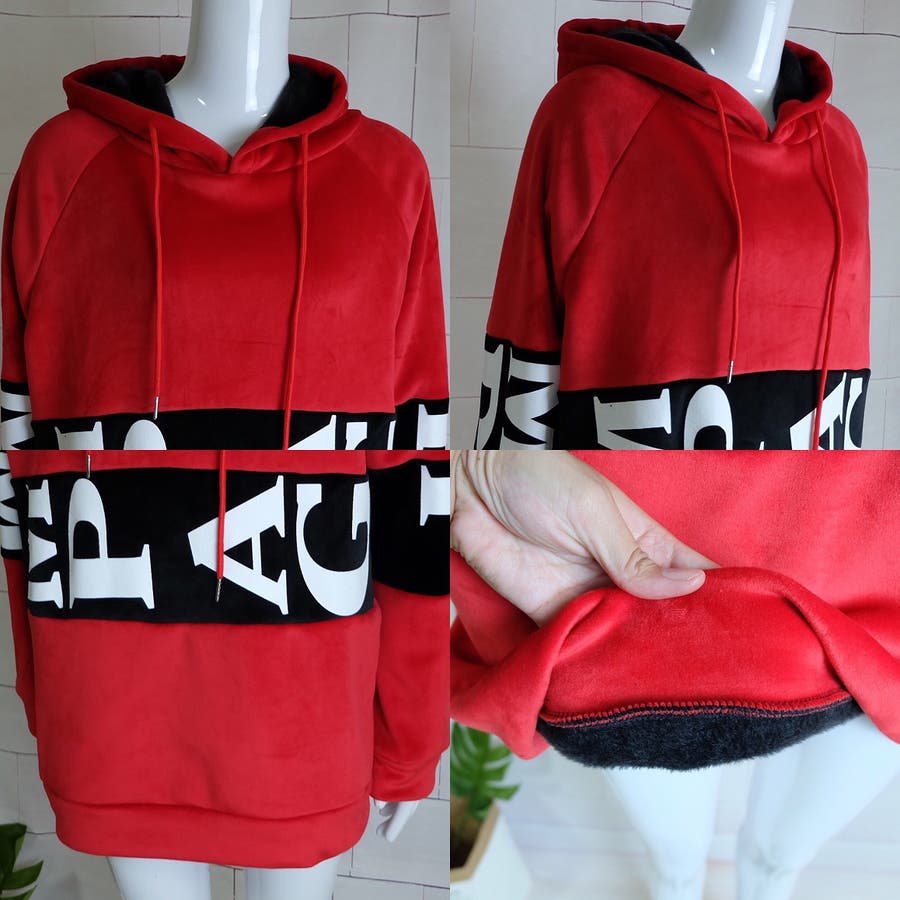 秋冬物 長袖フード付きカジュアルパーカー トレーナー 裏起毛 裏ボア