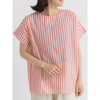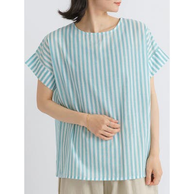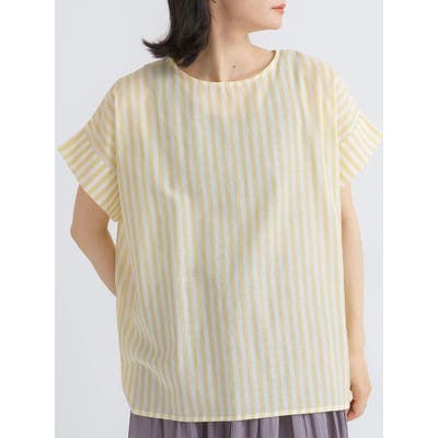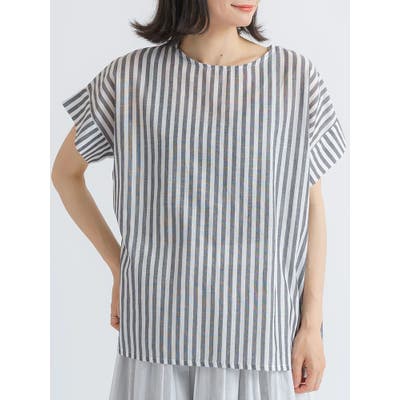 ラウンドネックで顔周りや首のラインもすっきりと見せてくれます。