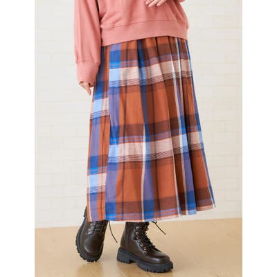 クラシカルな先染めチェック柄が印象的なミディ丈スカート。