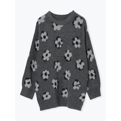 フラワー柄ニットプルオーバー
