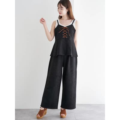 [SET]スエードポンチレースアップキャミソール×ワイドパンツ