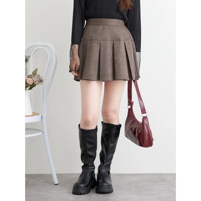 上品なスエード調素材を使用した、ミニ丈ながら大人の女性らしさを引き立てるプリーツスカート(セットアップ対応)