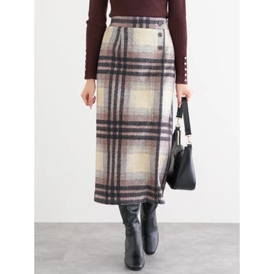 起毛感のあるチェック柄が季節感を引き立てるナロースカート。