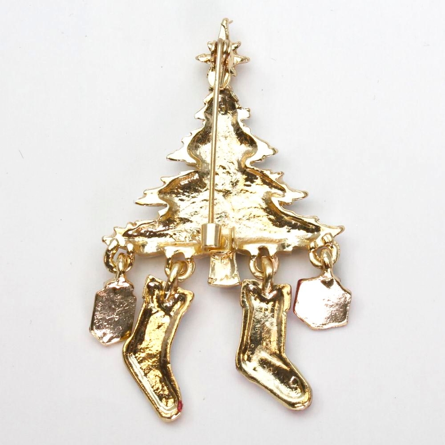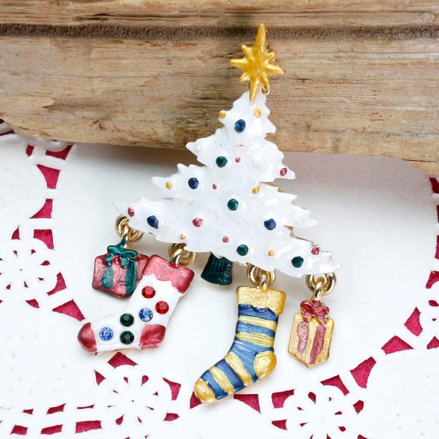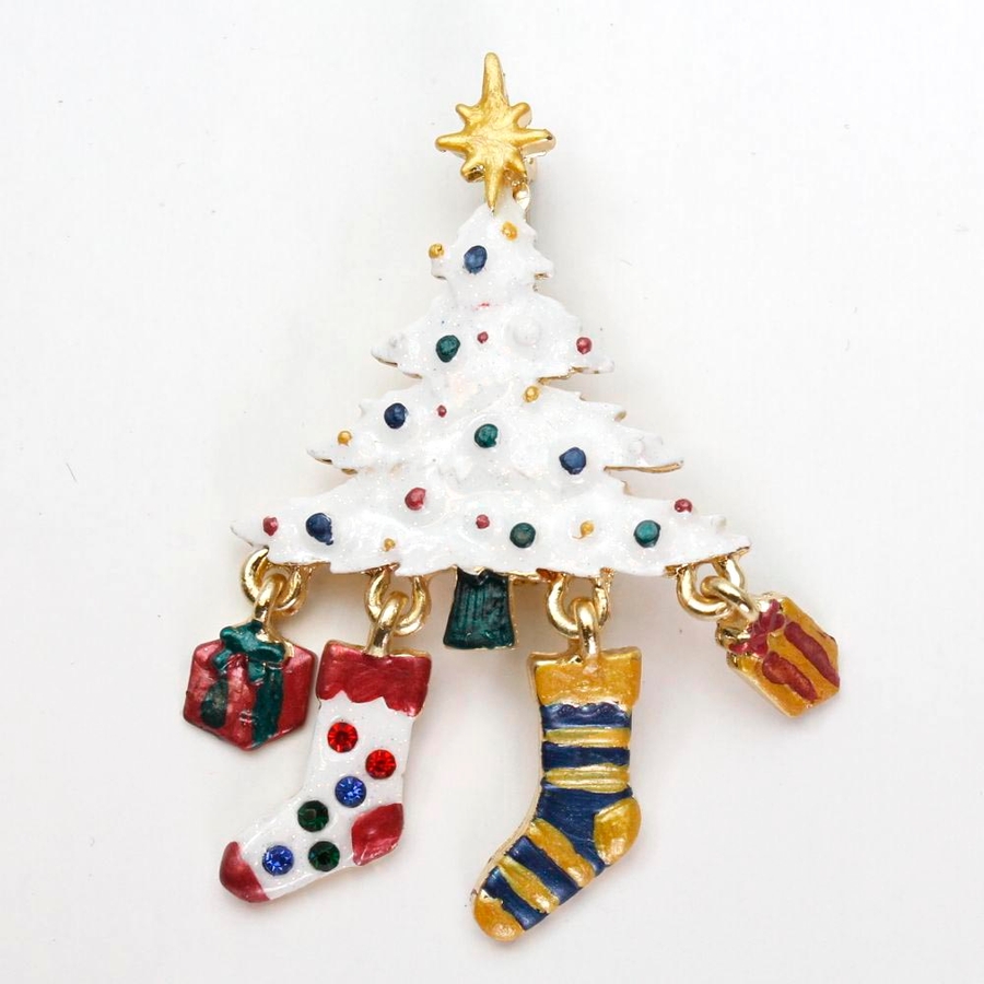 再入荷 クリスマス ホワイトツリーと靴下のブローチ
