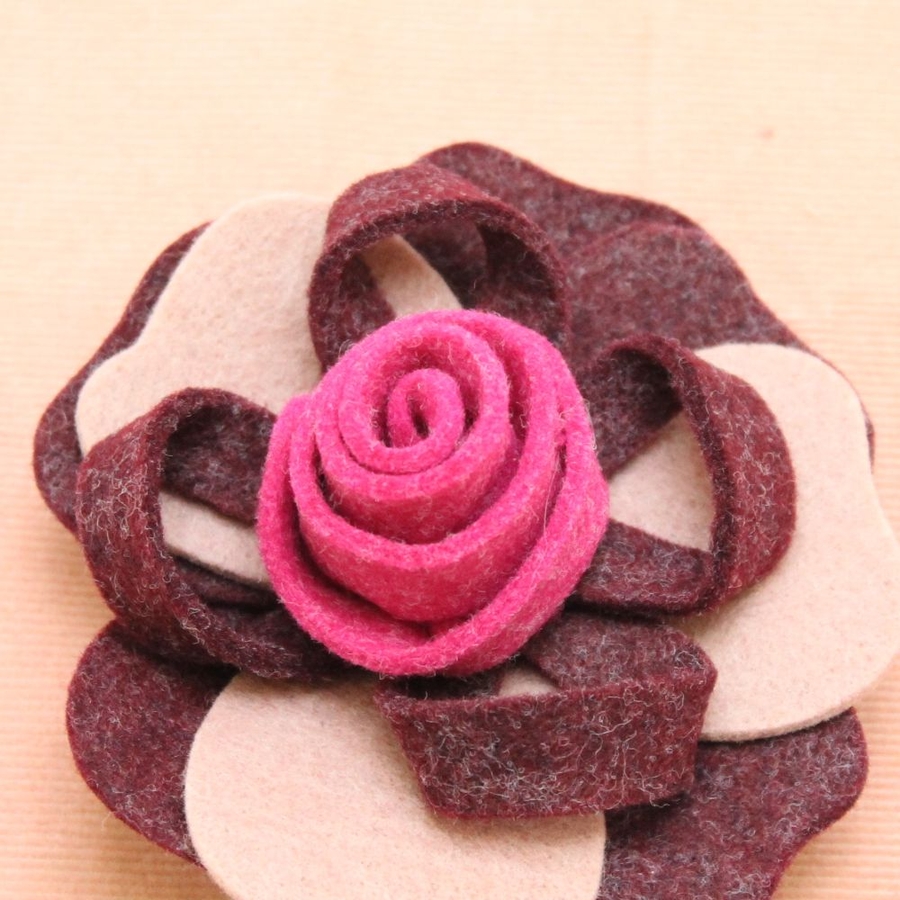 バーガンディーピンクのフェルトブローチ