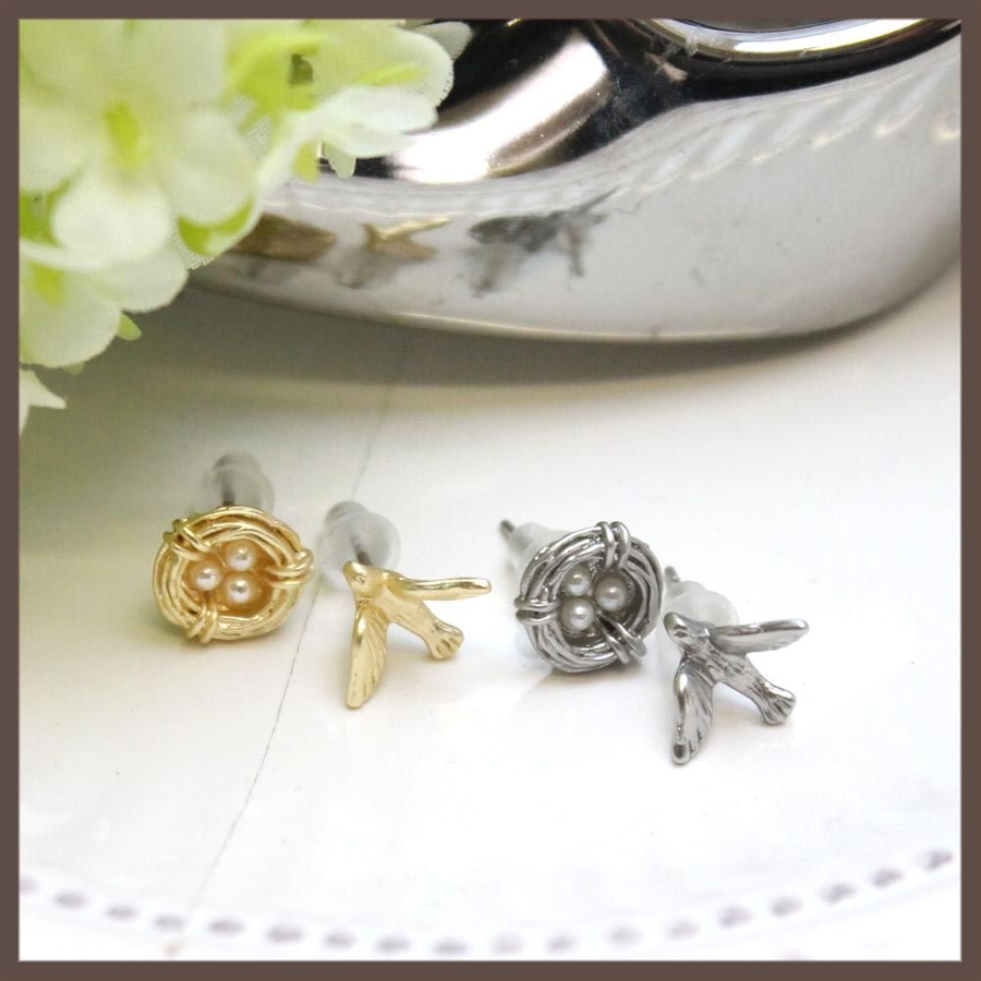 鳥のアシンメトリーピアス 2色