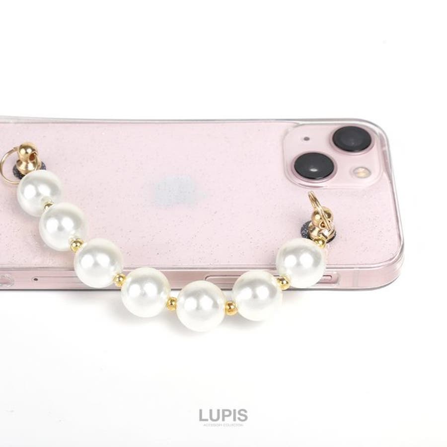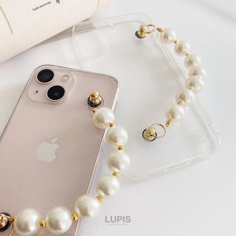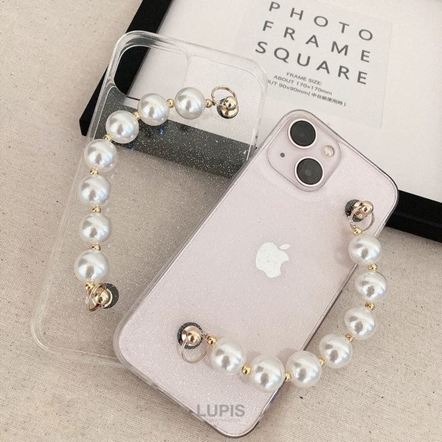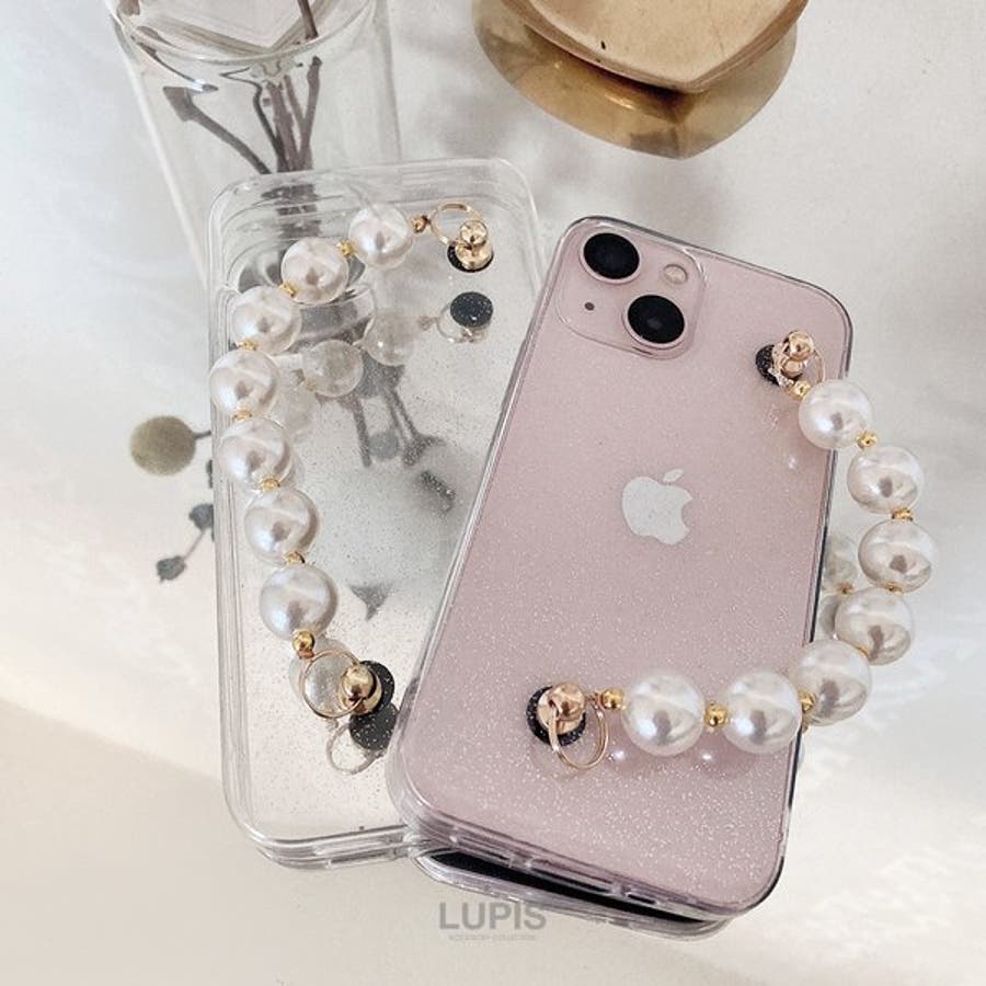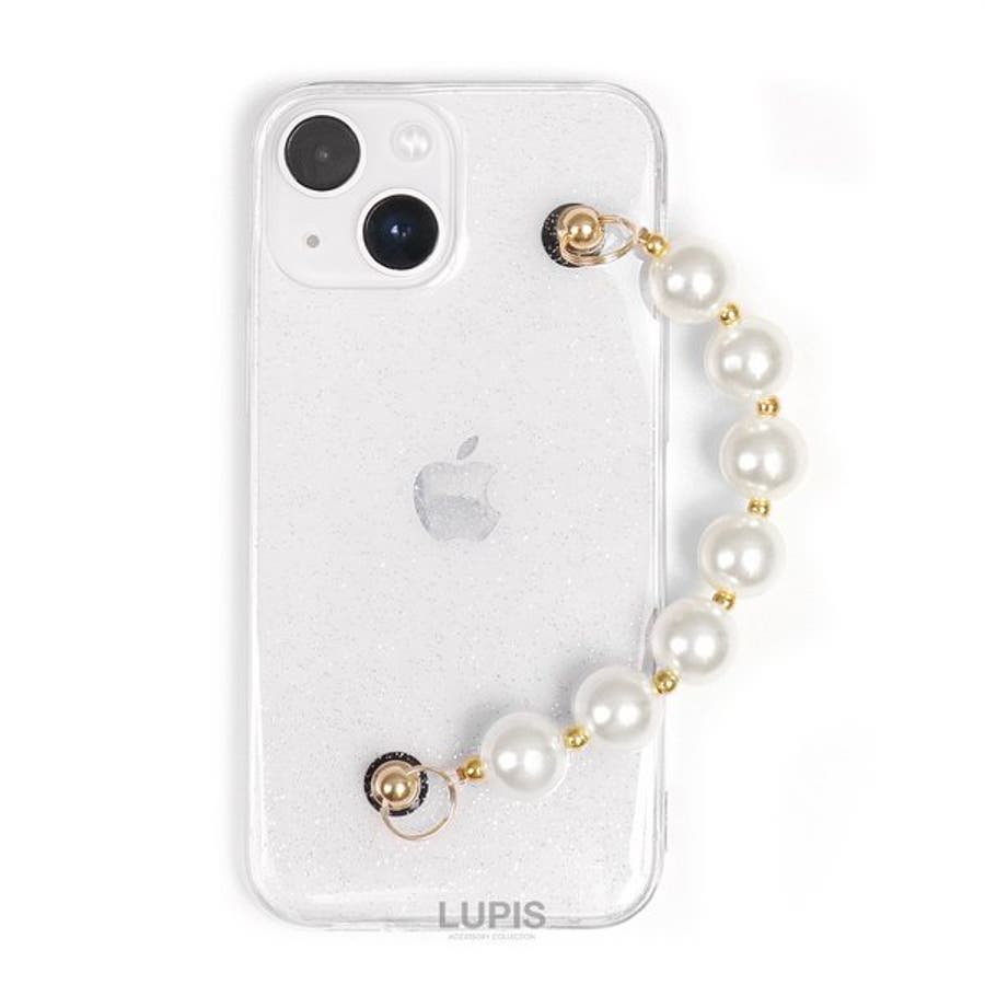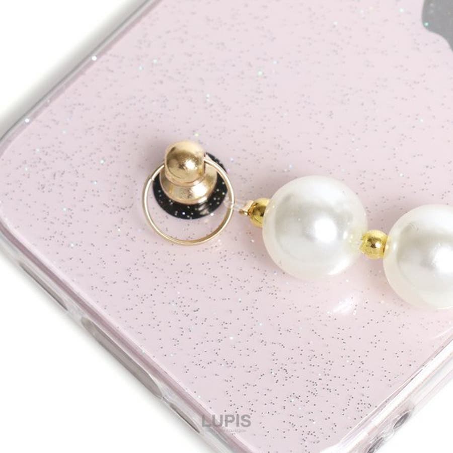 大粒パールのハンドルがついた上品でかわいいiPhoneケース。